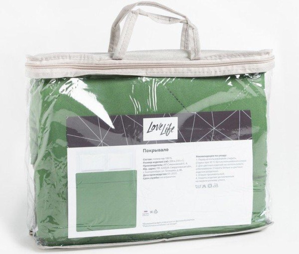 Покрывало LoveLife Евро 200×210±5 см, цвет зелёный, микрофайбер, 100% п/э