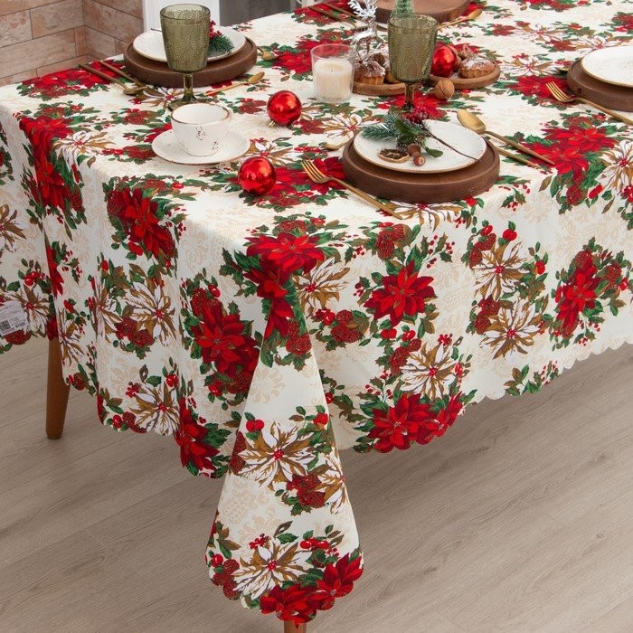 Скатерть Доляна «Новогодние украшения» 145×300 см, 100% п/э