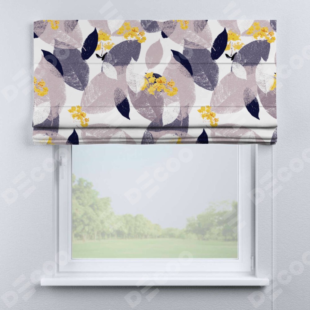 Римская штора производителя «Cortin», используется для проёма, пошита из ткани блэкаут с нанесением сублимационной печати «Листопад». Имеет универсальный механизм и подходит для монтажа: на потолок, на стену и в нишу.