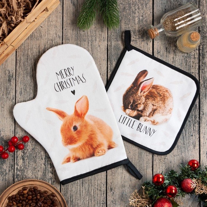 Набор кух. «Little bunny» варежка-прихватка 20×28 см, прихватка 19×19 см, 100% хл