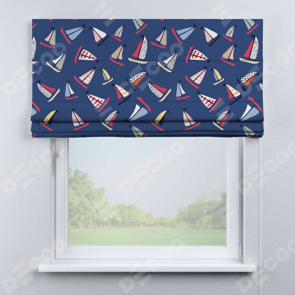 Римская штора производителя «Cortin», используется для проёма, пошита из ткани блэкаут с нанесением сублимационной печати «Морское приключение». Имеет универсальный механизм и подходит для монтажа: на потолок, на стену и в нишу.