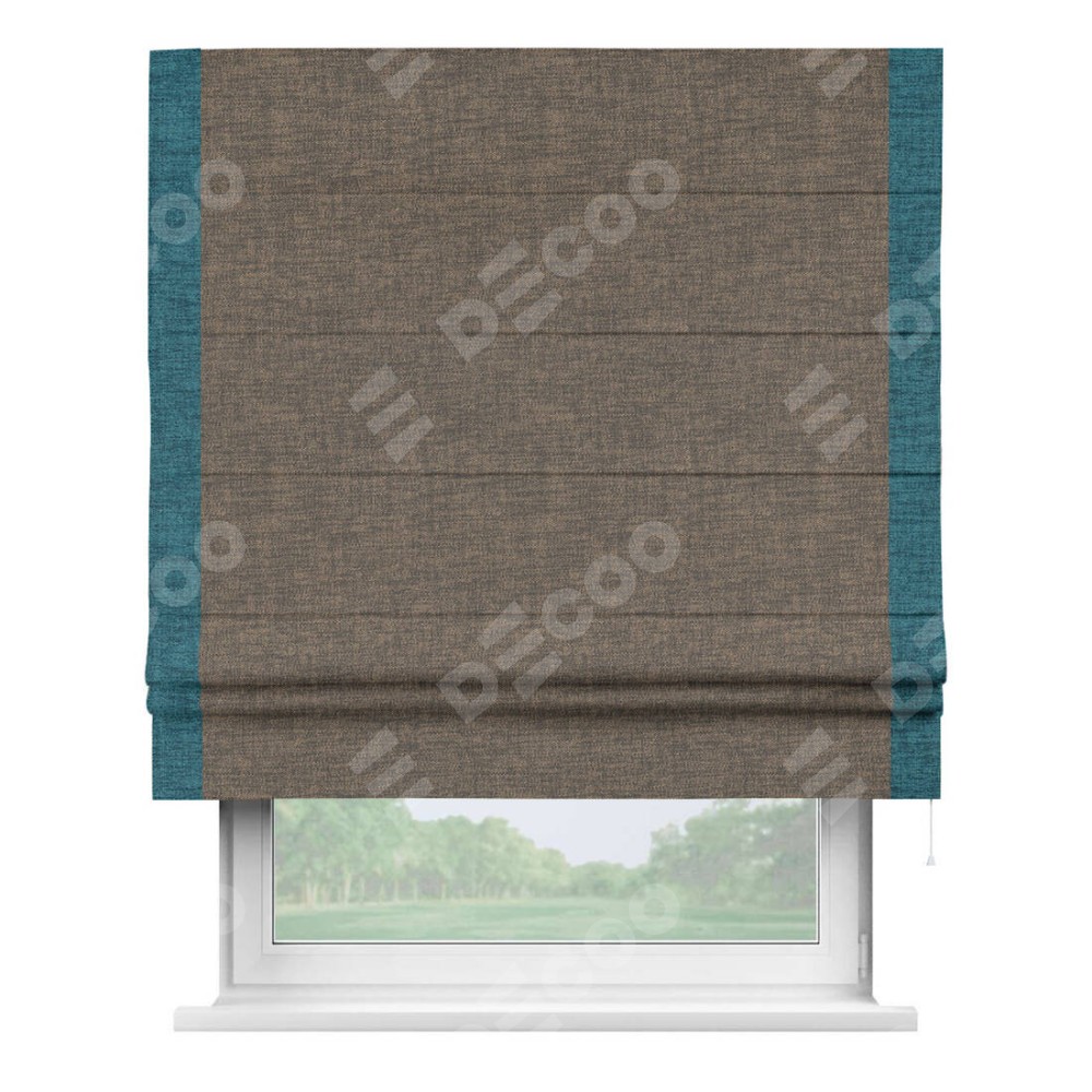 Римская штора «Кортин» с кантом Стрим Дуо, для проема, ткань рогожка димаут, коричневый