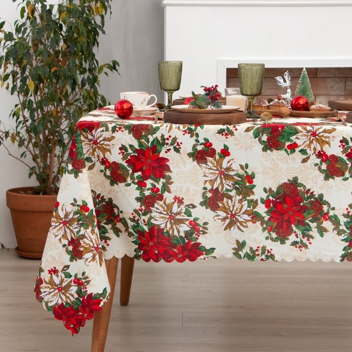 Скатерть Доляна «Новогодние украшения» 145×180 см, 100% п/э
