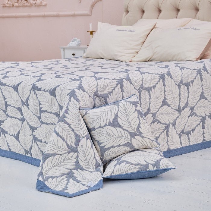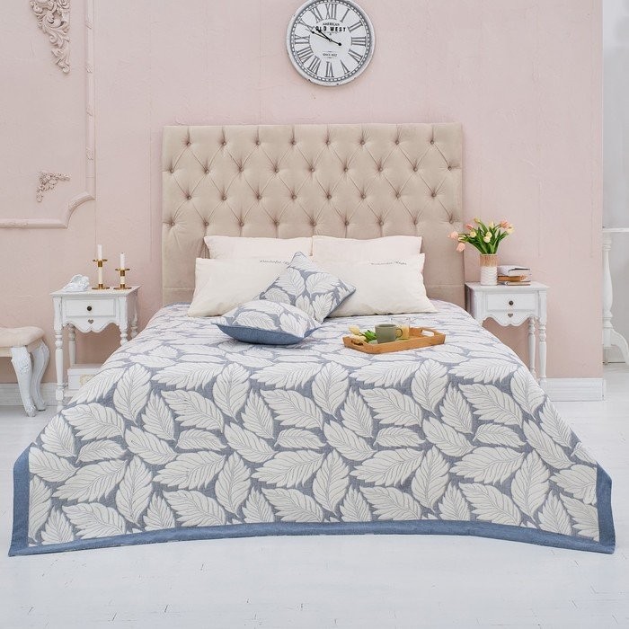 Покрывало хлопковое Этель «Листопад» 180×240 см, цвет синий, 100% хлопок, 300гр/м2