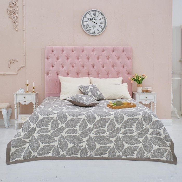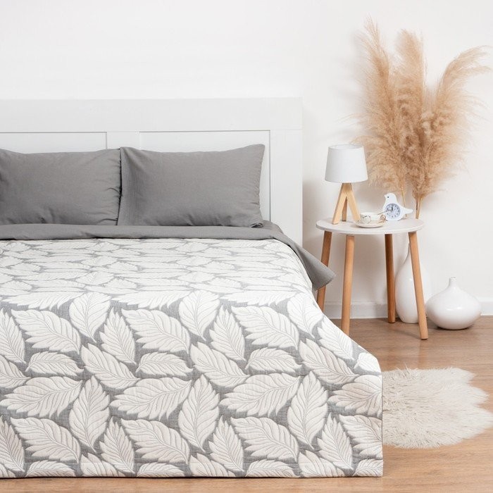 Покрывало хлопковое Этель «Листопад» 180×240 см, цвет серый, 100% хлопок, 300гр/м2