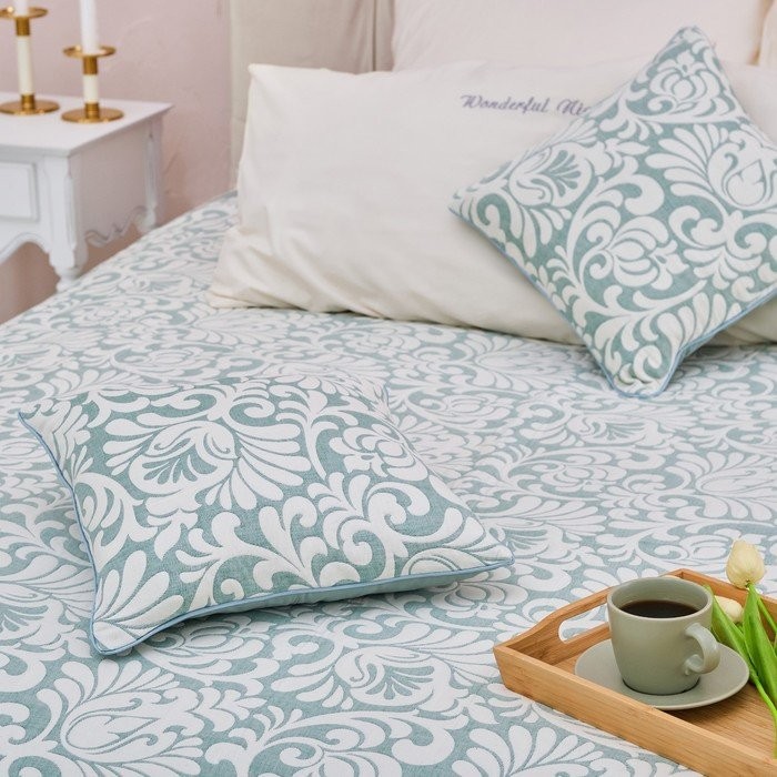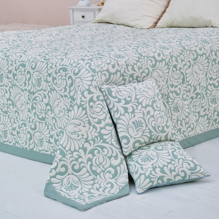 Покрывало хлопковое Этель «Узоры» 200×240 см, цвет зелёный, 100% хлопок, 300гр/м2