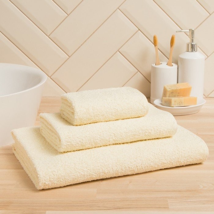 Полотенце махровое Экономь и Я 30*60 см, цв. молочный, 100% хлопок, 350 гр/м2