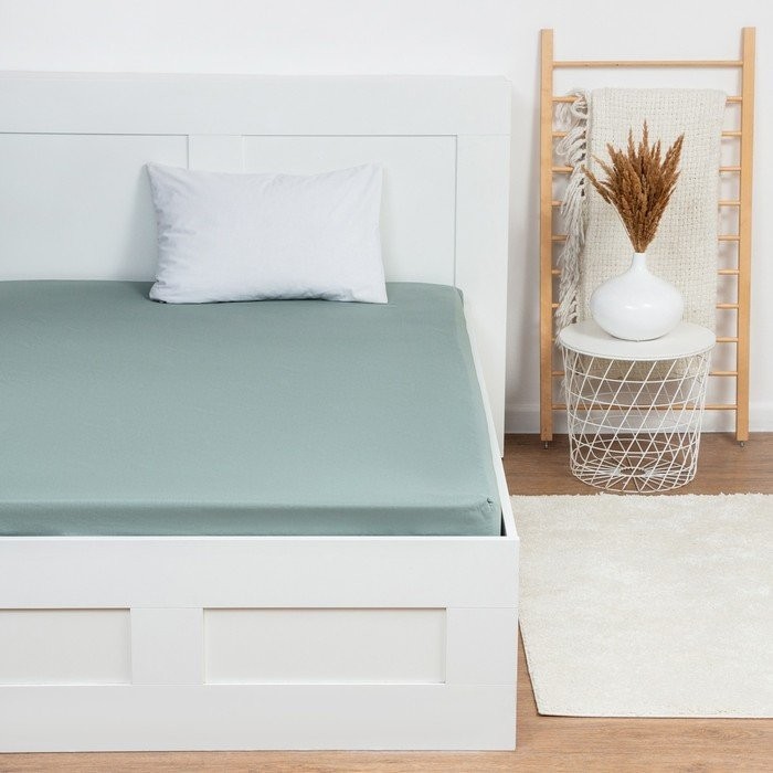 Простыня на резинке Этель 160х200×25, цвет серо-зелёный, 100% хлопок, бязь 125г/м2