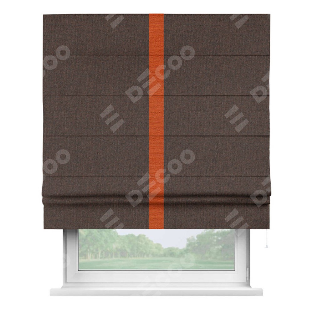 Римская штора «Кортин» с кантом Хайвэй, для проема, ткань лён коричневый