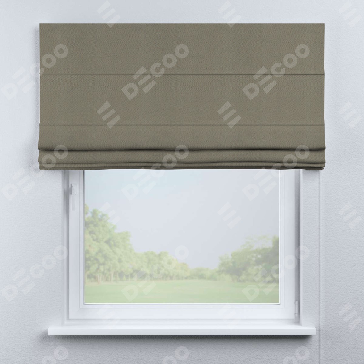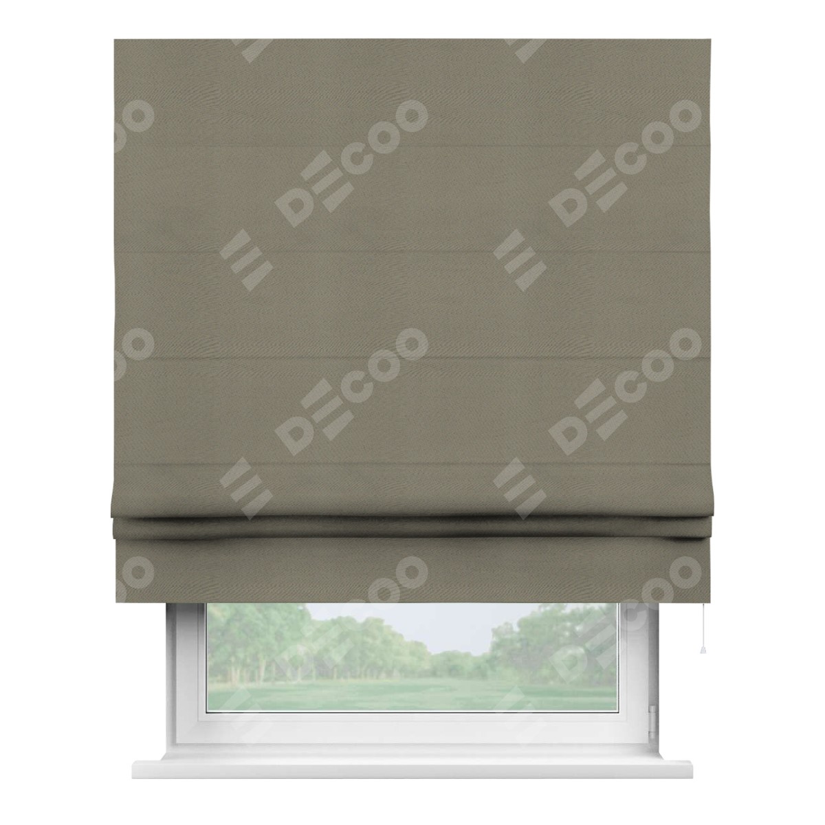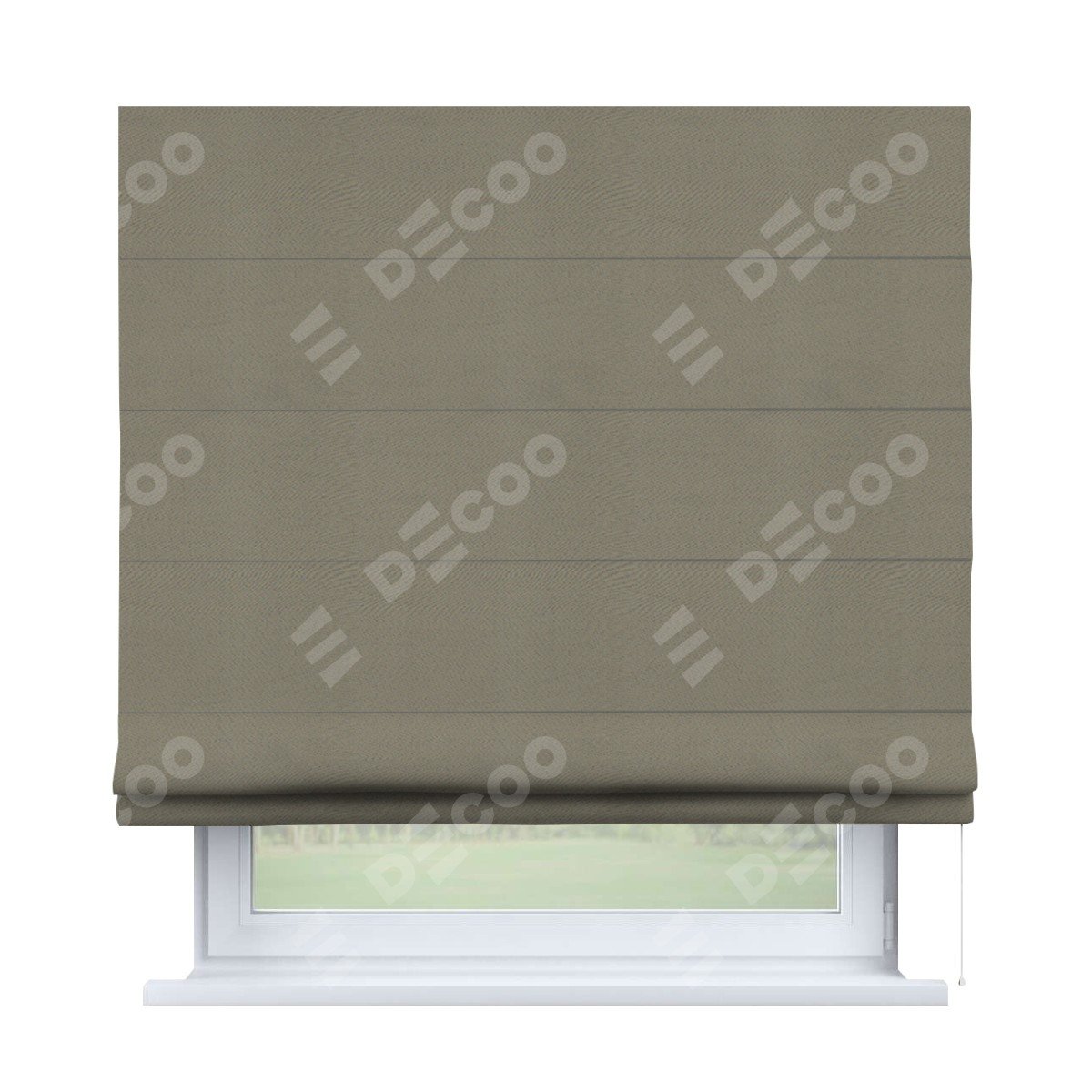 Римская штора производителя «Cortin», используется для проёма, пошита из ткани блэкаут однотонный бежево-серый, артикул ткани 00004. Имеет универсальный механизм и подходит для монтажа: на потолок, на стену и в нишу.
