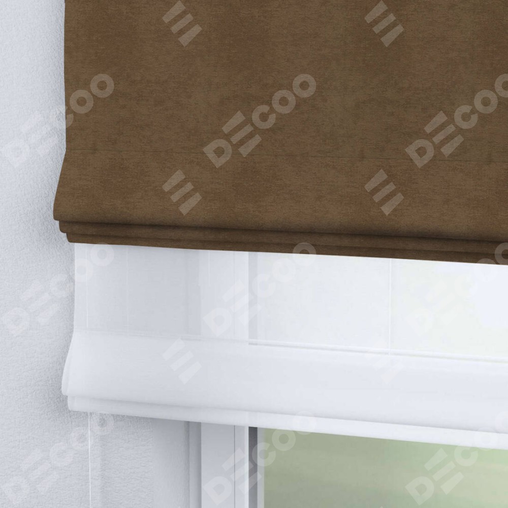 Римская штора день-ночь производителя «Cortin», используется для проёма, пошита из двух полотен, с лицевой стороны софт однотонный бронзовый артикул 33099, вторая ткань тюль (по стандарту комплектуется тюль белого цвета артикул V-01). Имеет универсальный механизм и подходит для монтажа: на потолок, на стену и в нишу.
