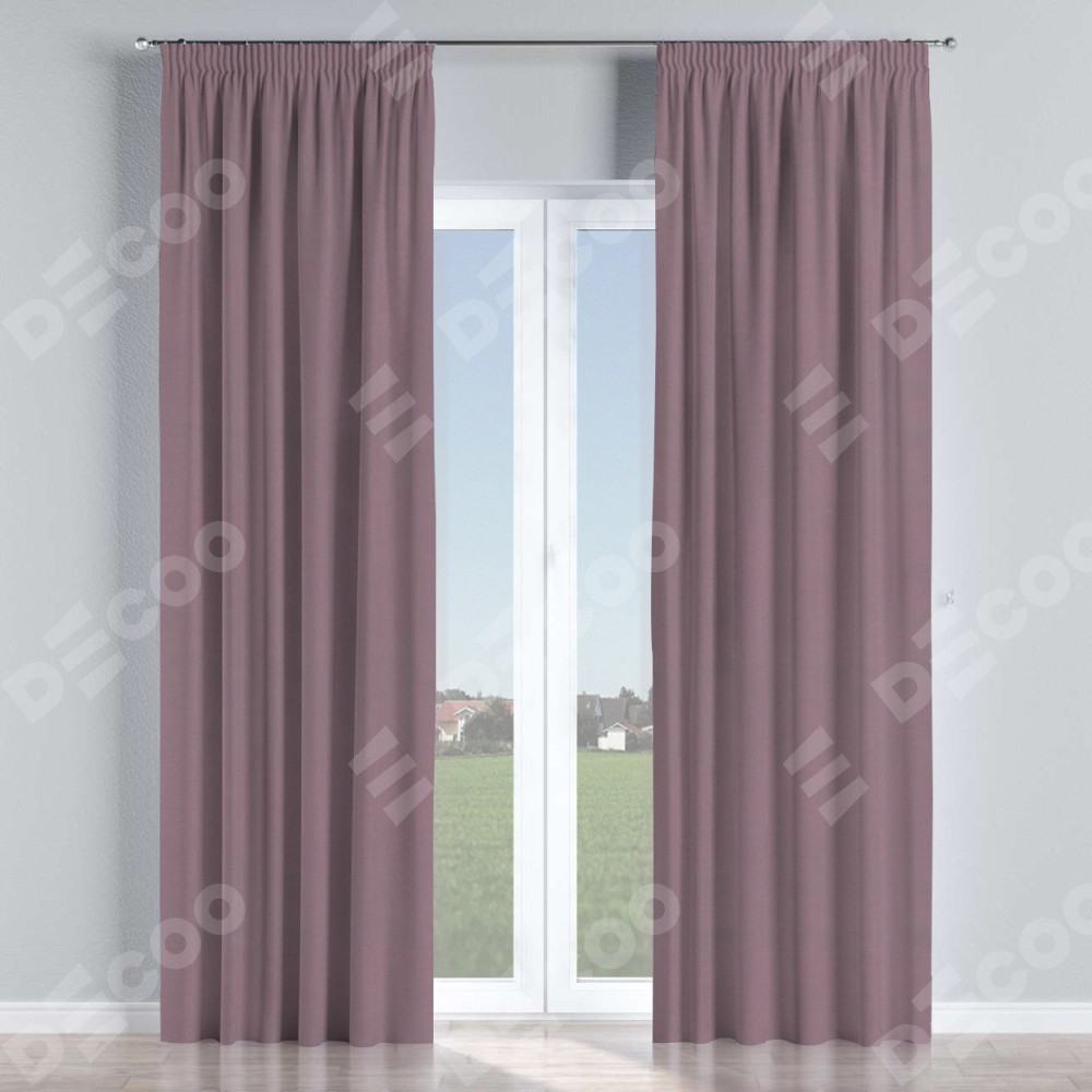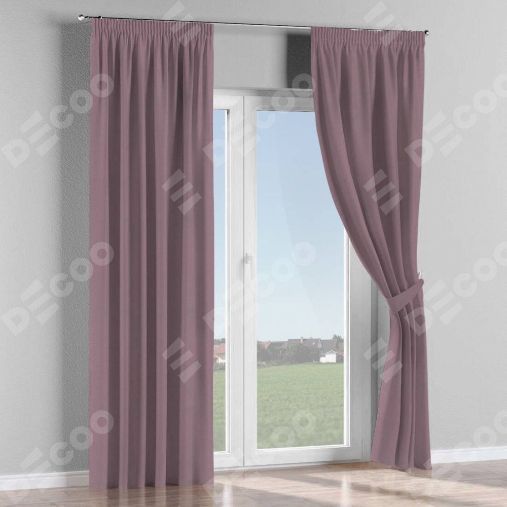 Комплект прямых штор, от производителя «Cortin», пошиты из ткани блэкаут однотонный брусника, артикул ткани 88302. С изнаночной стороны в верхней части штор пристрачивается шторная лента с декоративными складками «Карандаш». Для создания элегантных складок прямые шторы шьются по стандарту с коэффициентом 1:2 (на 100 см. ширины проёма 200 см. ширины ткани).