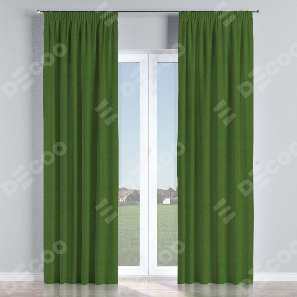 Комплект прямых штор, от производителя «Cortin», пошиты из ткани блэкаут однотонный зелёный перламутр, артикул ткани 81859п. С изнаночной стороны в верхней части штор пристрачивается шторная лента с декоративными складками «Карандаш». Для создания элегантных складок прямые шторы шьются по стандарту с коэффициентом 1:2 (на 100 см. ширины проёма 200 см. ширины ткани).