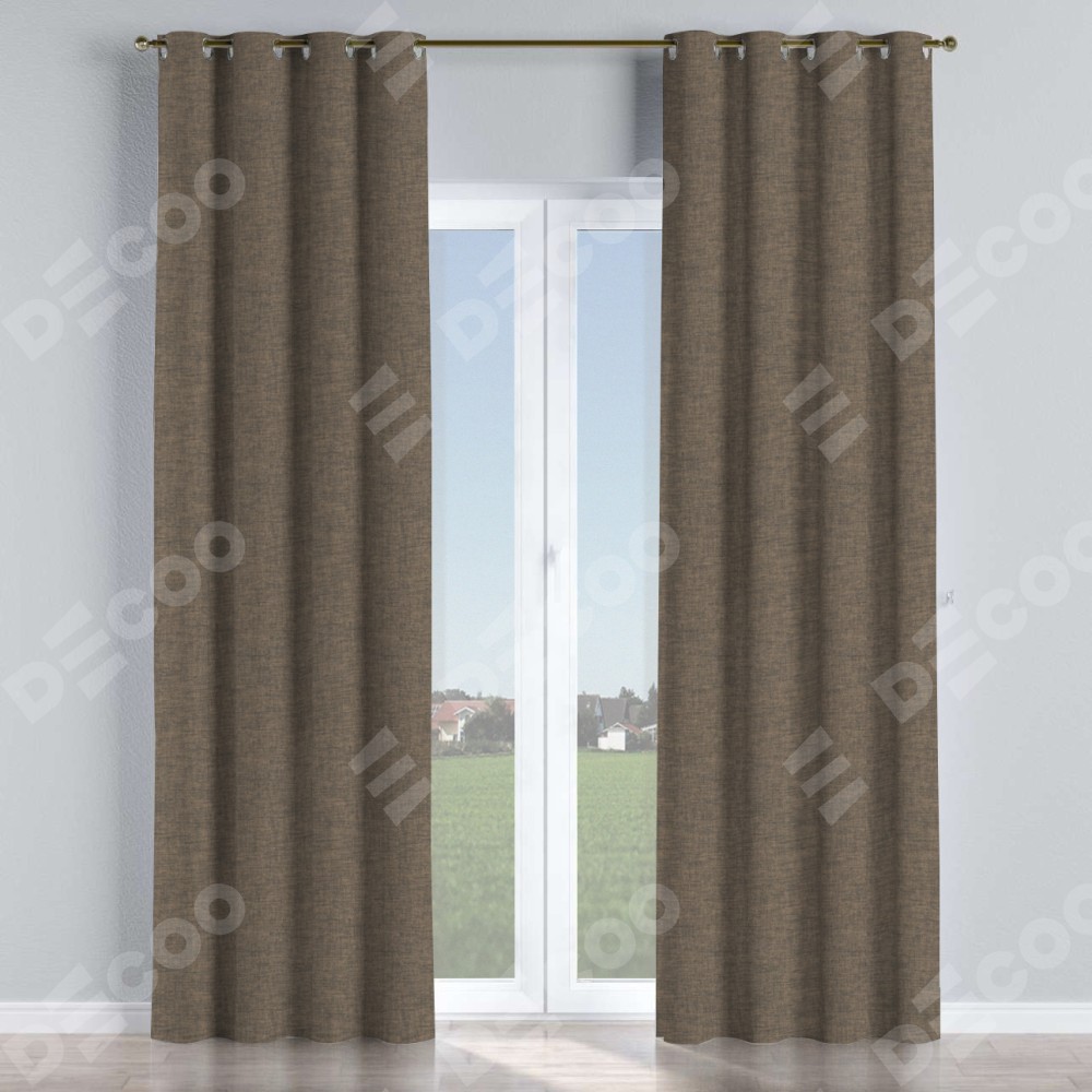 Комплект прямых штор, от производителя «Cortin», пошиты из ткани рогожка димаут коричневый, артикул ткани 80420. Данная модель пошита на люверсах, комплектуется на выбор круглым карнизом и подходит для монтажа на стену или потолок. Прямые шторы на люверсах шьются по стандарту с коэффициентом 1/2 (на 100 см. ширины проёма 200 см. ширины ткани), отличительным преимуществом данной модели является простой способ монтажа. Достаточно повесить ее на трубу и штора готова!
