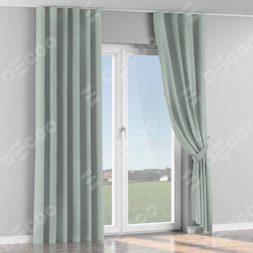 Комплект прямых штор, от производителя «Cortin», пошиты из ткани рогожка димаут серый, артикул ткани 80426. С изнаночной стороны в верхней части штор пристрачивается шторная лента с декоративными складками «Волна». Для создания элегантных складок прямые шторы шьются по стандарту с коэффициентом 1:2 (на 100 см. ширины проёма 200 см. ширины ткани).