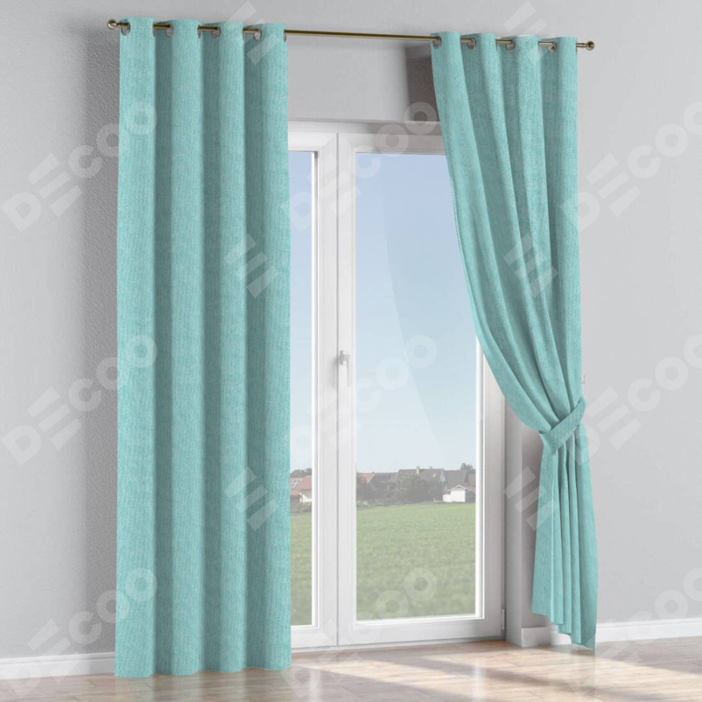 Комплект прямых штор, от производителя «Cortin», пошиты из ткани лён димаут бирюзовый, артикул ткани 23. Данная модель пошита на люверсах, комплектуется на выбор круглым карнизом и подходит для монтажа на стену или потолок. Прямые шторы на люверсах шьются по стандарту с коэффициентом 1/2 (на 100 см. ширины проёма 200 см. ширины ткани), отличительным преимуществом данной модели является простой способ монтажа. Достаточно повесить ее на трубу и штора готова!