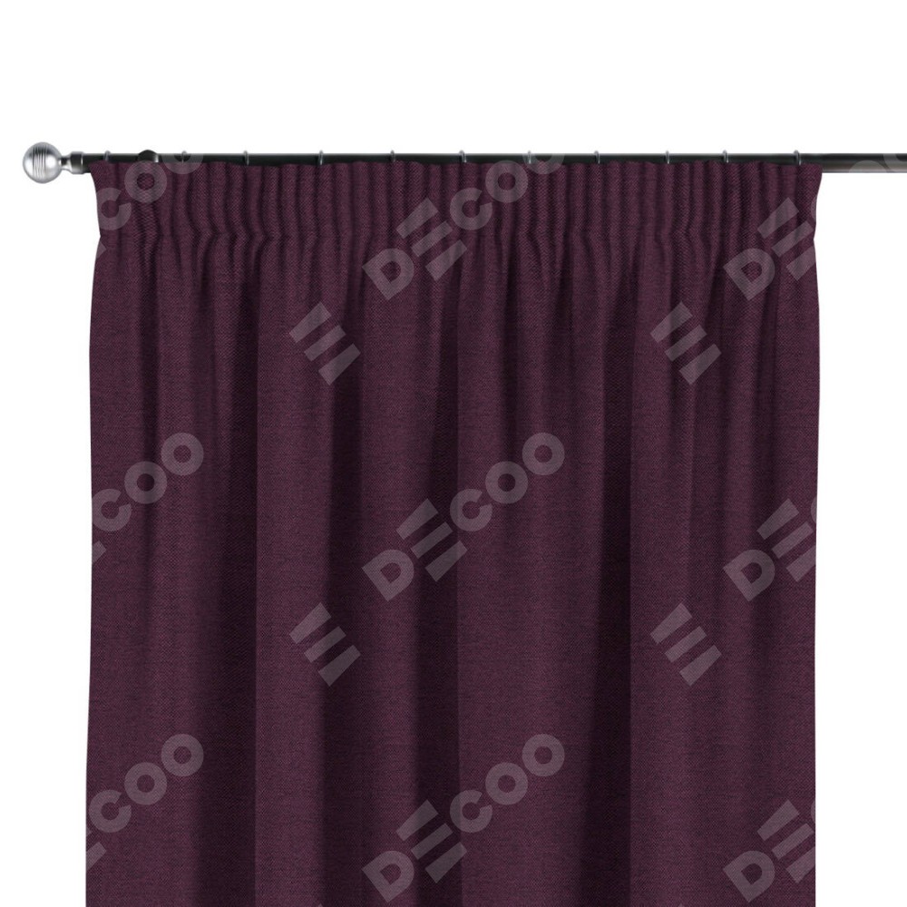 Комплект прямых штор, от производителя «Cortin», пошиты из ткани лён димаут фиолетовый, артикул ткани 8817. С изнаночной стороны в верхней части штор пристрачивается шторная лента с декоративными складками «Карандаш». Для создания элегантных складок прямые шторы шьются по стандарту с коэффициентом 1:2 (на 100 см. ширины проёма 200 см. ширины ткани).