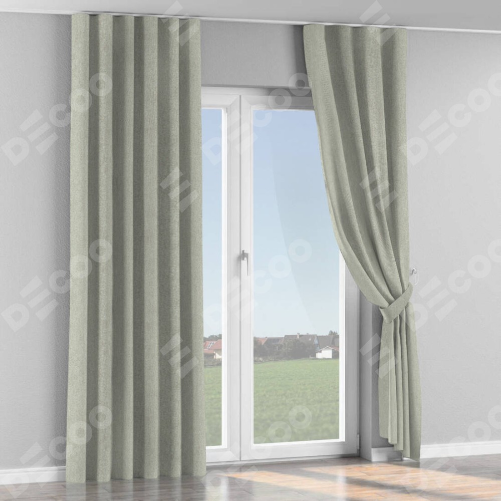 Комплект прямых штор, от производителя «Cortin», пошиты из ткани твид блэкаут коричнево-серый, артикул ткани 21574. С изнаночной стороны в верхней части штор пристрачивается шторная лента с декоративными складками «Волна». Для создания элегантных складок прямые шторы шьются по стандарту с коэффициентом 1:2 (на 100 см. ширины проёма 200 см. ширины ткани).