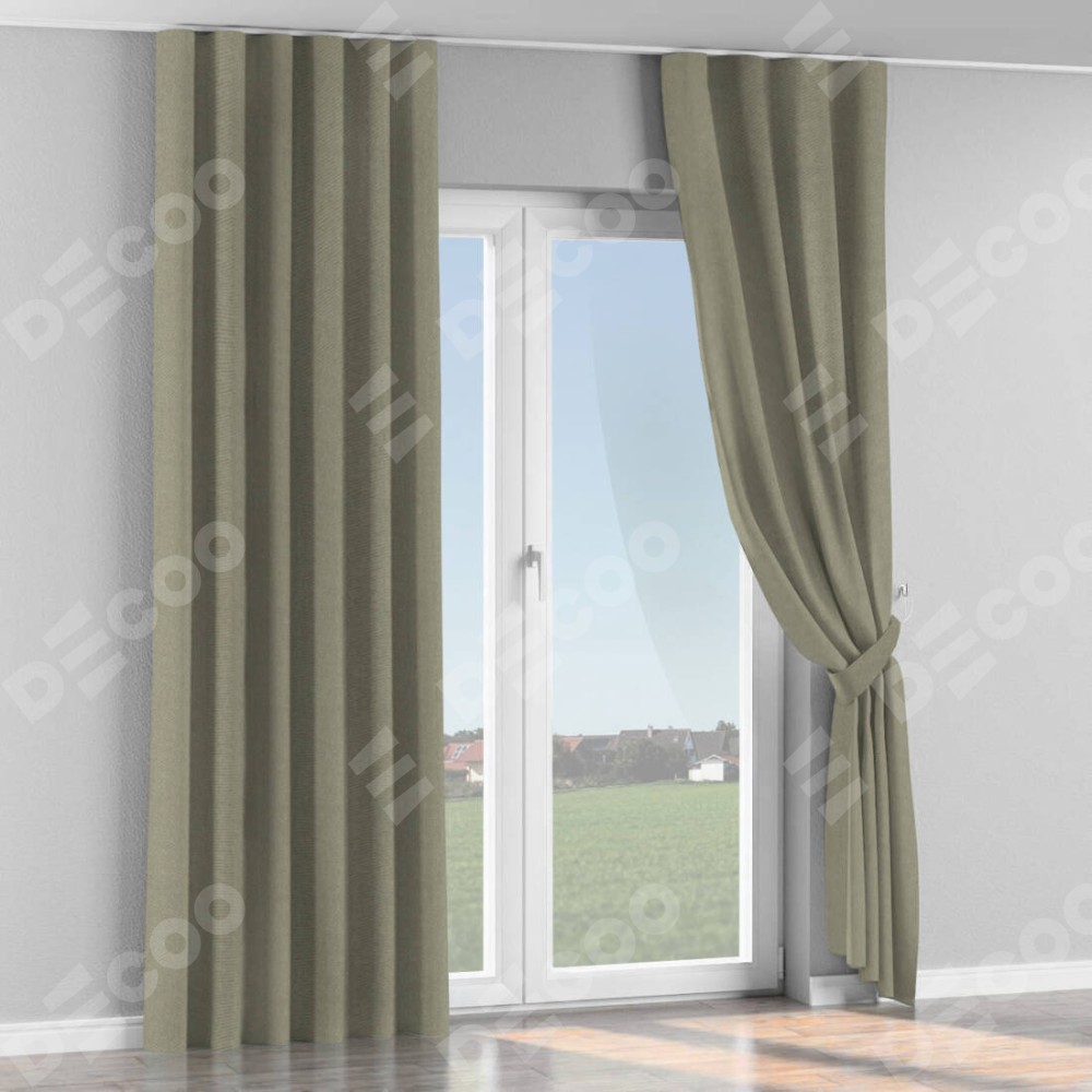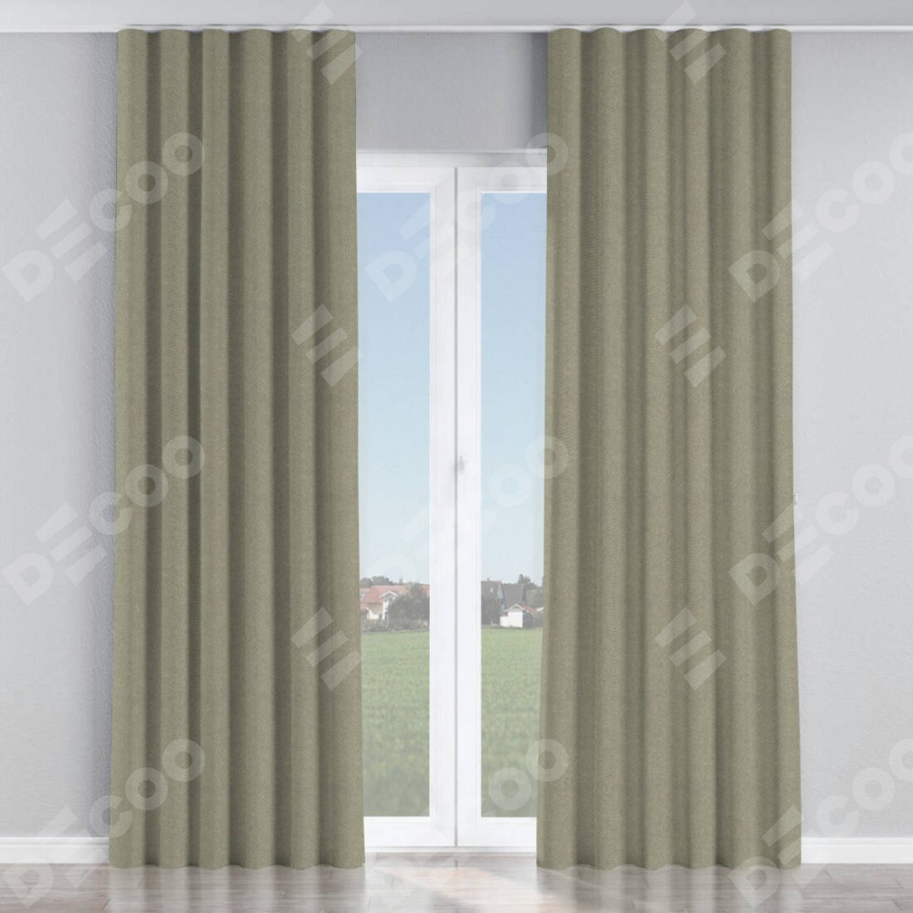 Комплект прямых штор, от производителя «Cortin», пошиты из ткани твид кофейный, артикул ткани 26412. С изнаночной стороны в верхней части штор пристрачивается шторная лента с декоративными складками «Волна». Для создания элегантных складок прямые шторы шьются по стандарту с коэффициентом 1:2 (на 100 см. ширины проёма 200 см. ширины ткани).