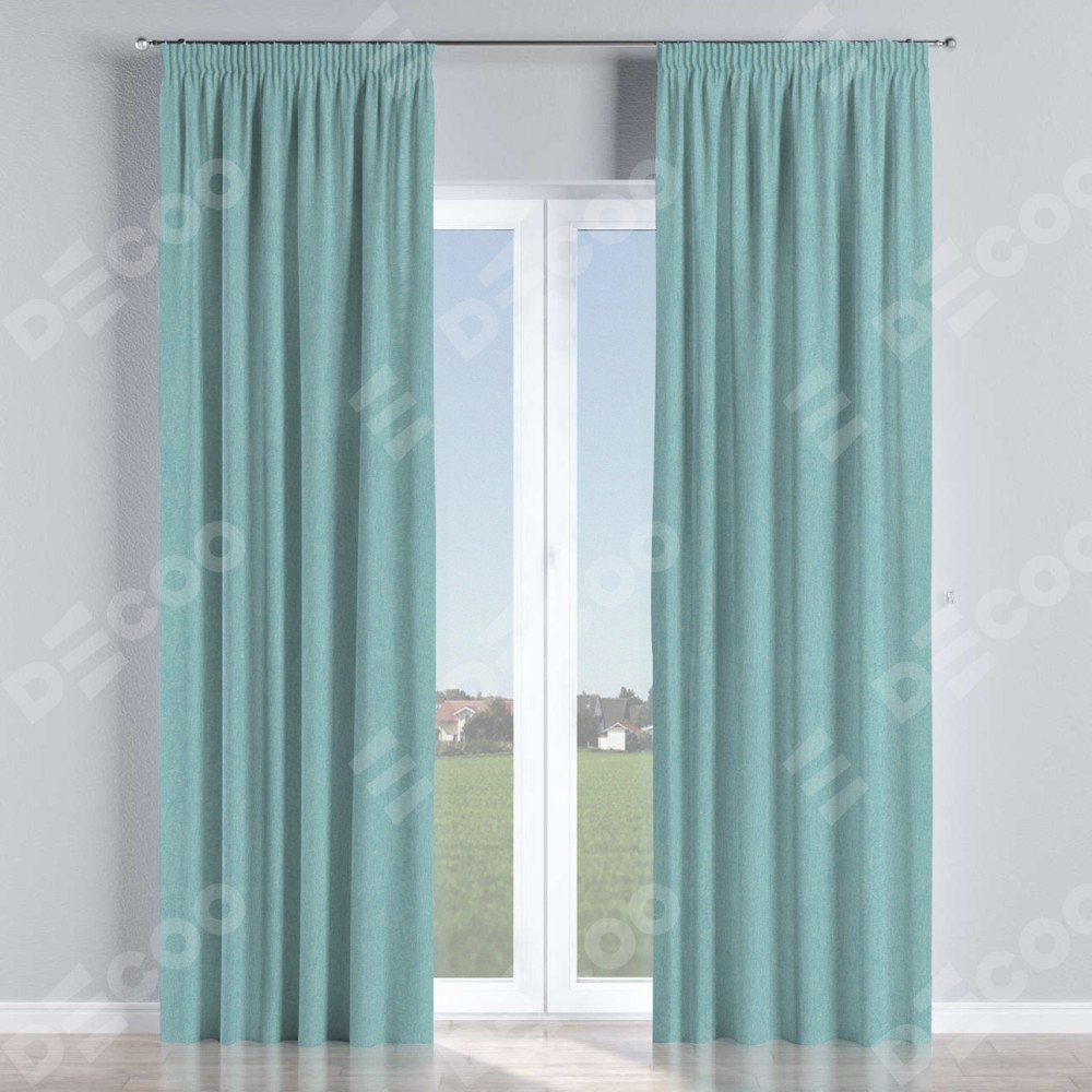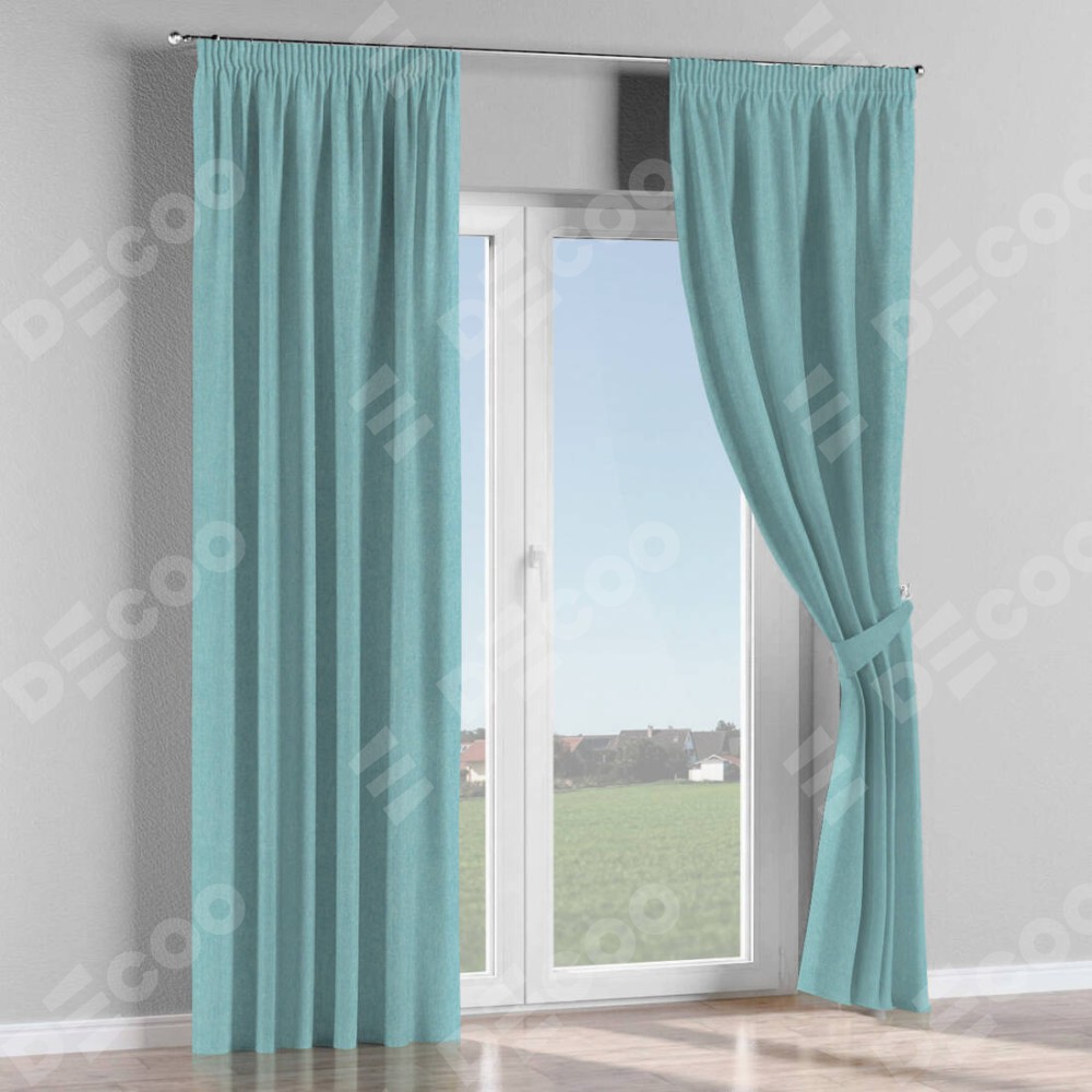 Комплект прямых штор, от производителя «Cortin», пошиты из ткани твид блэкаут небесно-голубой, артикул ткани 21578. С изнаночной стороны в верхней части штор пристрачивается шторная лента с декоративными складками «Карандаш». Для создания элегантных складок прямые шторы шьются по стандарту с коэффициентом 1:2 (на 100 см. ширины проёма 200 см. ширины ткани).