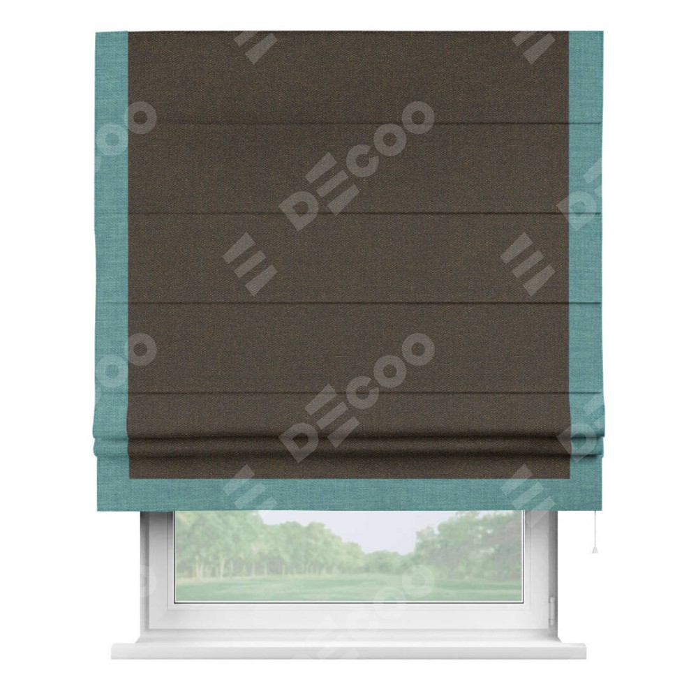 Римская штора производителя «Cortin», используется для проёма, пошита из ткани лён темно-коричневый, артикул 53444. Отделка шторы кантом «Виктория», ткань для канта используется из льна разной расцветки на выбор. Имеет универсальный механизм и подходит для монтажа: на потолок, на стену и в нишу.