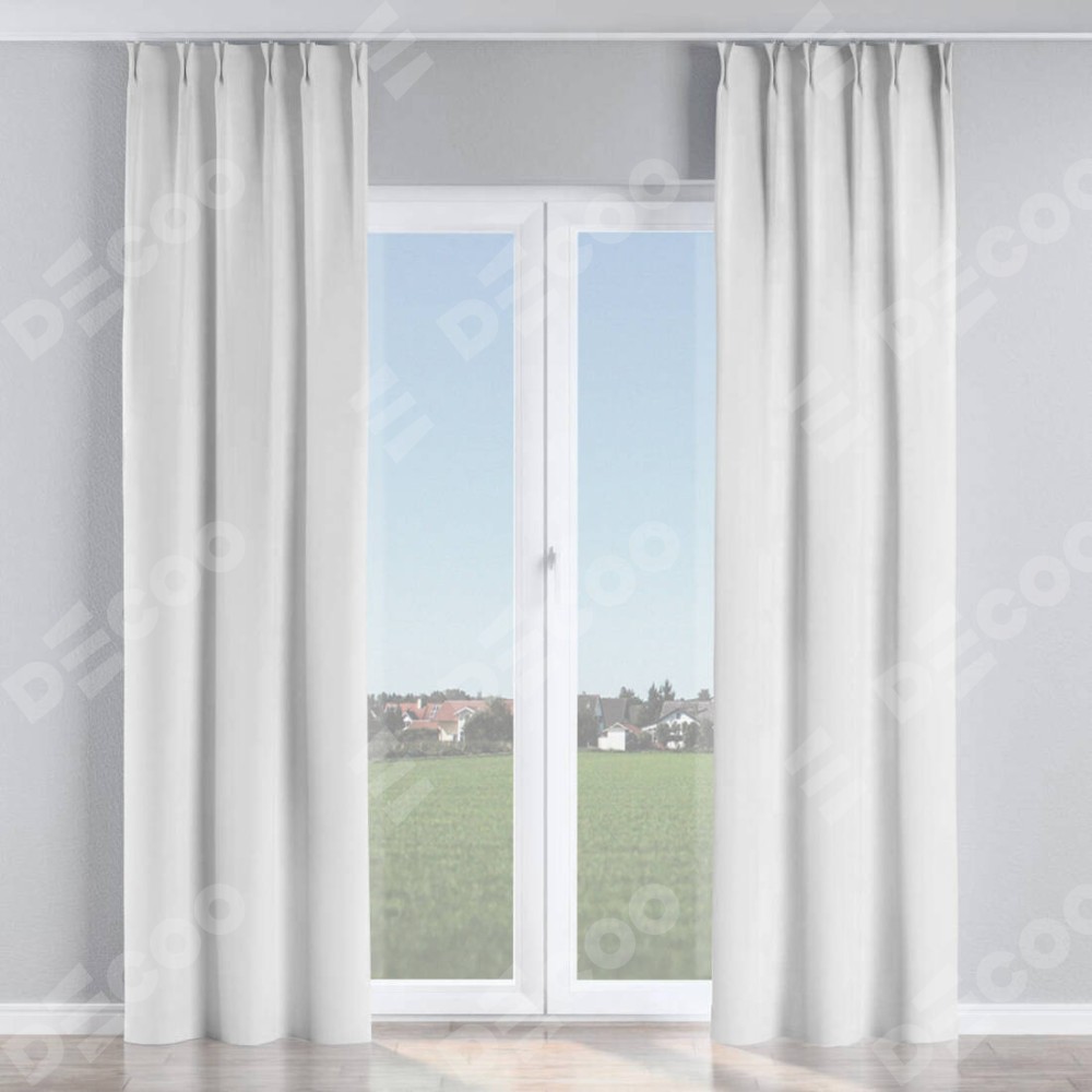 Комплект прямых штор, от производителя «Cortin», пошиты из ткани вельвет дымчато-белый, артикул ткани 85535. С изнаночной стороны в верхней части штор пристрачивается шторная лента с декоративными складками «Кустик». Для создания элегантных складок прямые шторы шьются по стандарту с коэффициентом 1:2 (на 100 см. ширины проёма 200 см. ширины ткани).