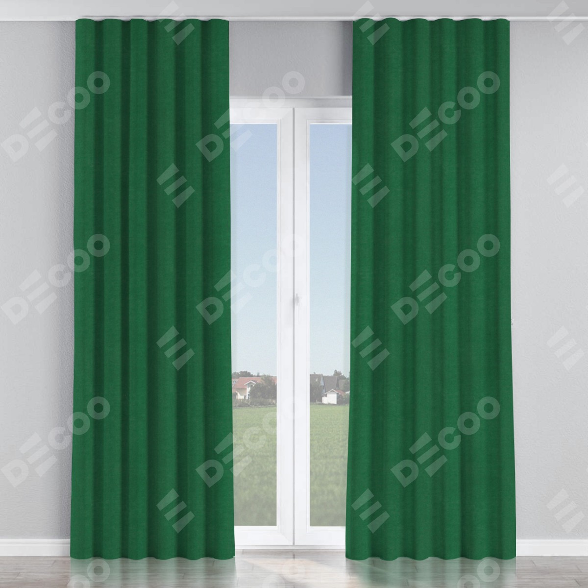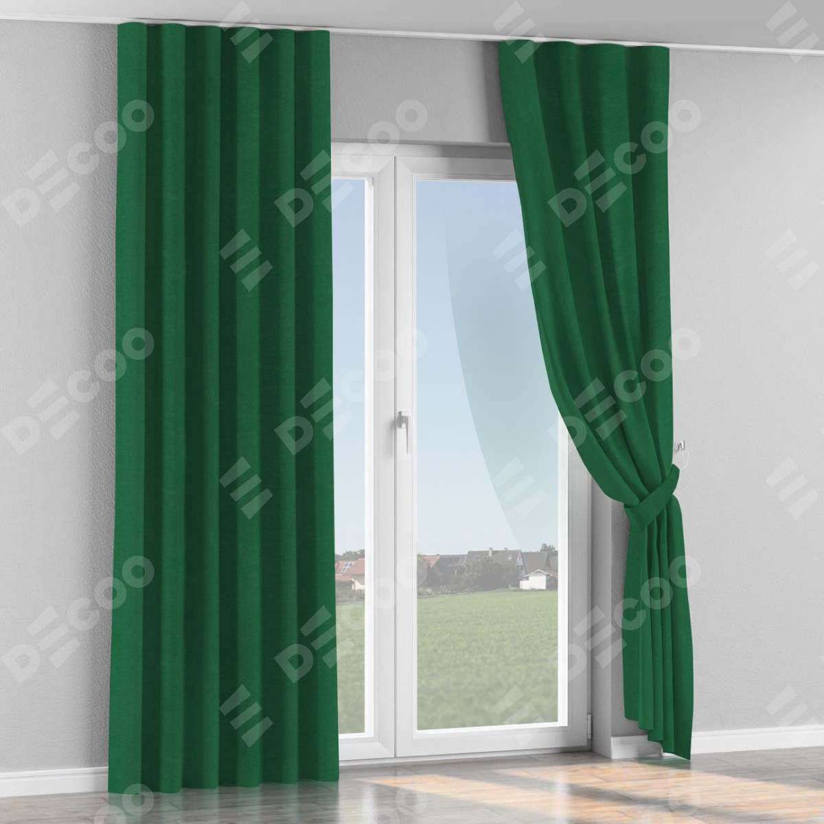 Комплект прямых штор, от производителя «Cortin», пошиты из ткани вельвет зелёный, артикул ткани 85546. С изнаночной стороны в верхней части штор пристрачивается шторная лента с декоративными складками «Волна». Для создания элегантных складок прямые шторы шьются по стандарту с коэффициентом 1:2 (на 100 см. ширины проёма 200 см. ширины ткани).