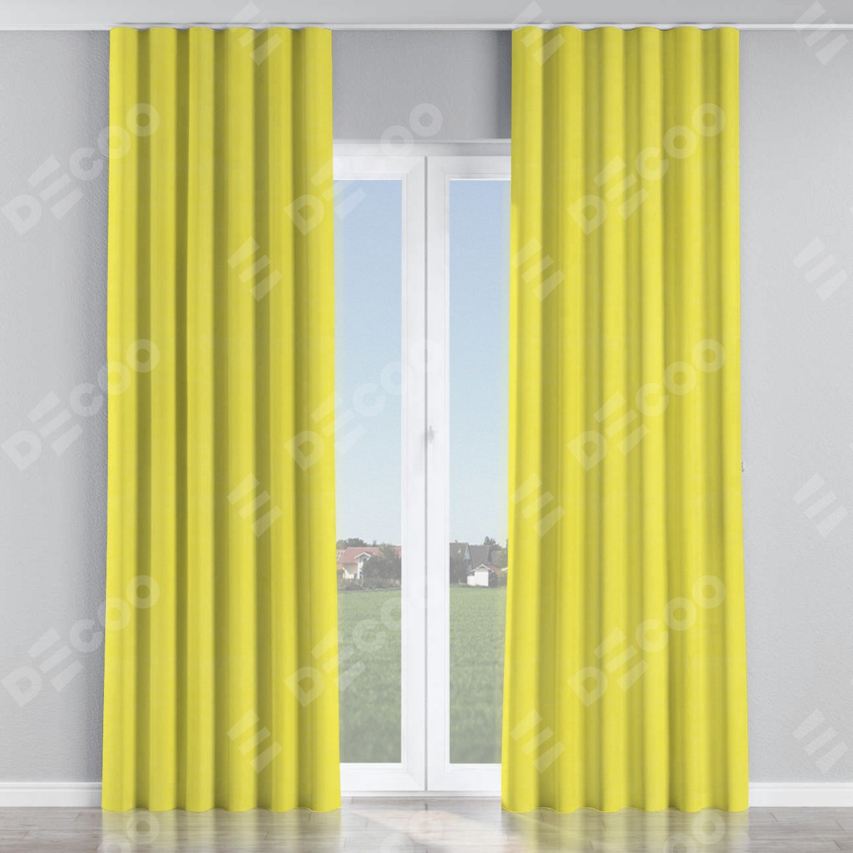 Комплект прямых штор, от производителя «Cortin», пошиты из ткани вельвет светло-желтый, артикул ткани 30997. С изнаночной стороны в верхней части штор пристрачивается шторная лента с декоративными складками «Волна». Для создания элегантных складок прямые шторы шьются по стандарту с коэффициентом 1:2 (на 100 см. ширины проёма 200 см. ширины ткани).