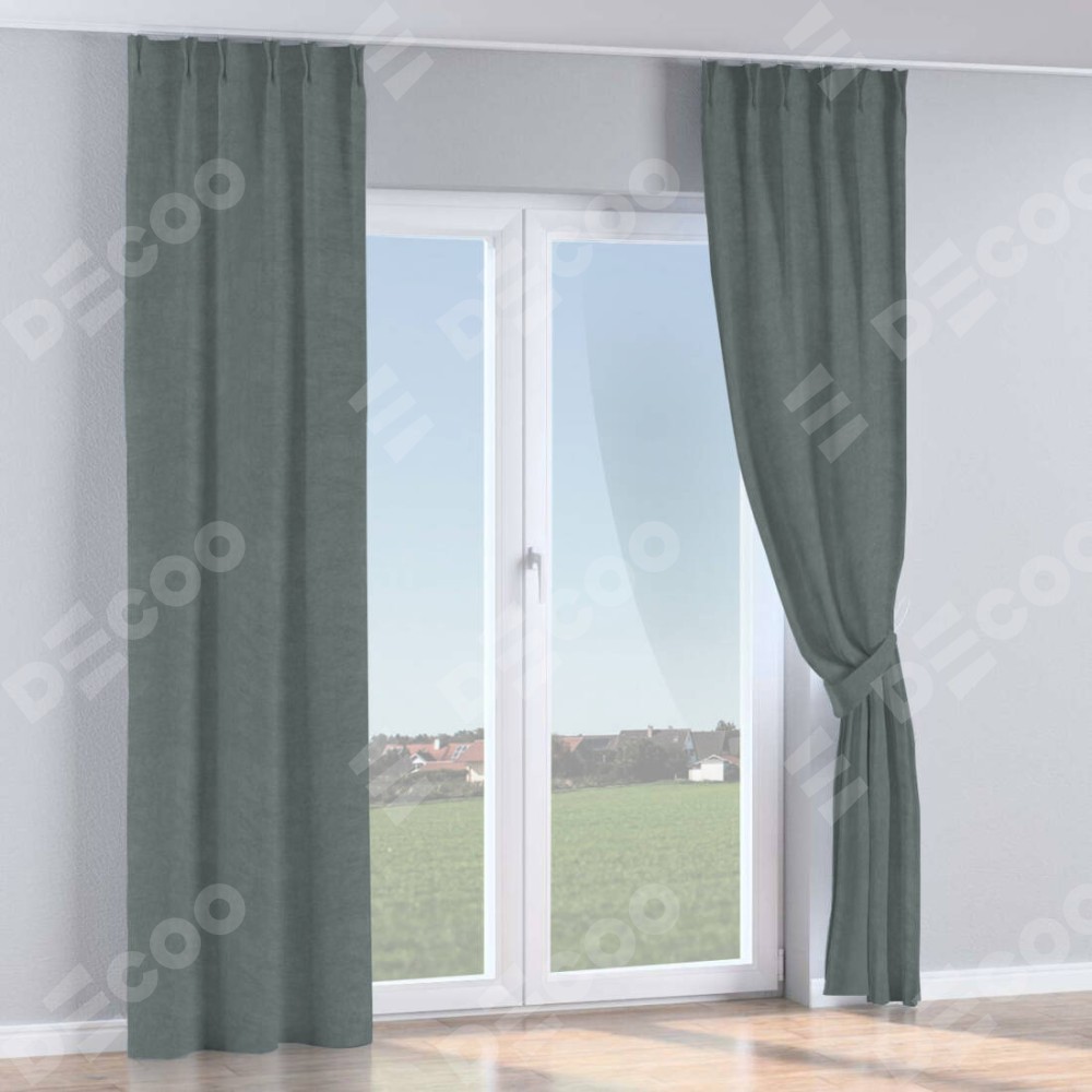 Комплект прямых штор, от производителя «Cortin», пошиты из ткани вельвет серый, артикул ткани 85542. С изнаночной стороны в верхней части штор пристрачивается шторная лента с декоративными складками «Кустик». Для создания элегантных складок прямые шторы шьются по стандарту с коэффициентом 1:2 (на 100 см. ширины проёма 200 см. ширины ткани).