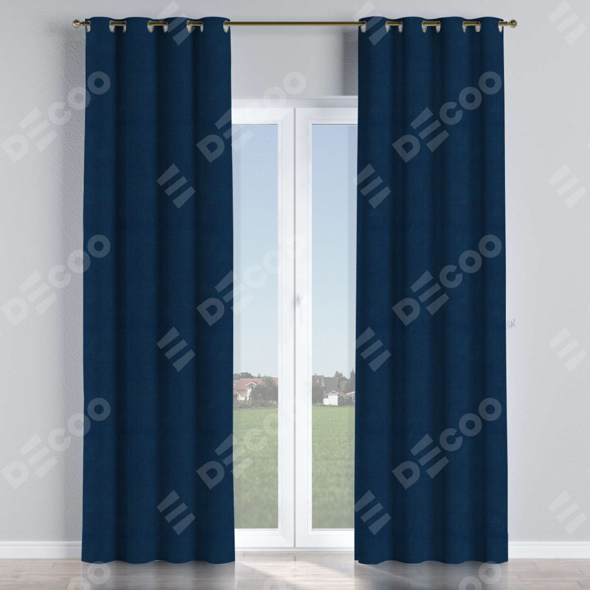 Комплект прямых штор, от производителя «Cortin», пошиты из ткани вельвет тёмно-синий, артикул ткани 14152. Данная модель пошита на люверсах, комплектуется на выбор круглым карнизом и подходит для монтажа на стену или потолок. Прямые шторы на люверсах шьются по стандарту с коэффициентом 1/2 (на 100 см. ширины проёма 200 см. ширины ткани), отличительным преимуществом данной модели является простой способ монтажа. Достаточно повесить ее на трубу и штора готова!