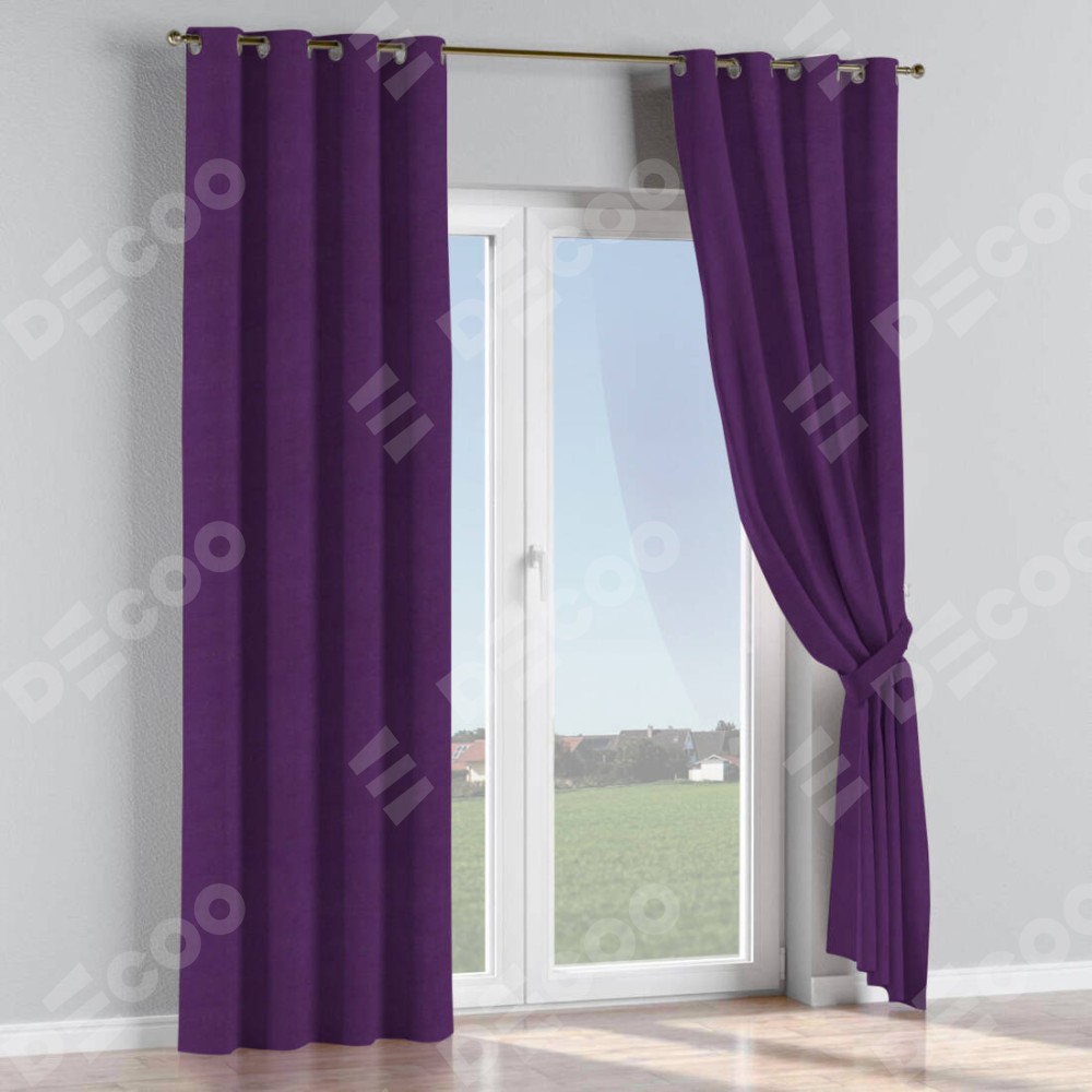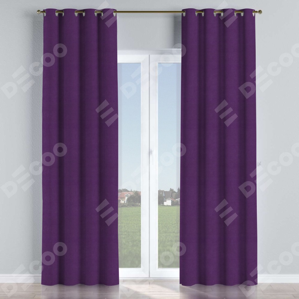 Комплект прямых штор, от производителя «Cortin», пошиты из ткани вельвет тёмно-фиолетовый, артикул ткани 17753. Данная модель пошита на люверсах, комплектуется на выбор круглым карнизом и подходит для монтажа на стену или потолок. Прямые шторы на люверсах шьются по стандарту с коэффициентом 1/2 (на 100 см. ширины проёма 200 см. ширины ткани), отличительным преимуществом данной модели является простой способ монтажа. Достаточно повесить ее на трубу и штора готова!