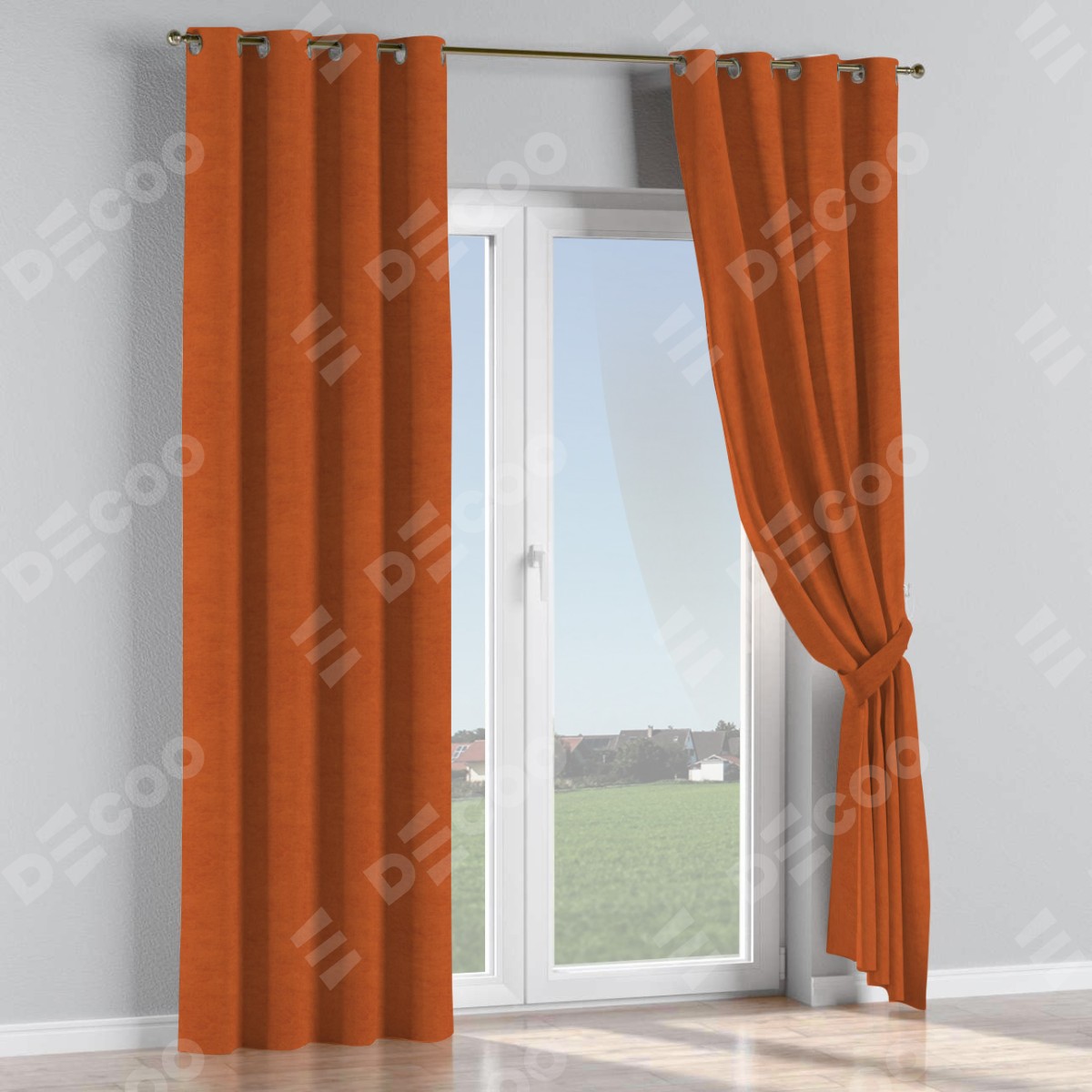 Комплект прямых штор, от производителя «Cortin», пошиты из ткани вельвет терракотовый, артикул ткани 85548. Данная модель пошита на люверсах, комплектуется на выбор круглым карнизом и подходит для монтажа на стену или потолок. Прямые шторы на люверсах шьются по стандарту с коэффициентом 1/2 (на 100 см. ширины проёма 200 см. ширины ткани), отличительным преимуществом данной модели является простой способ монтажа. Достаточно повесить ее на трубу и штора готова!