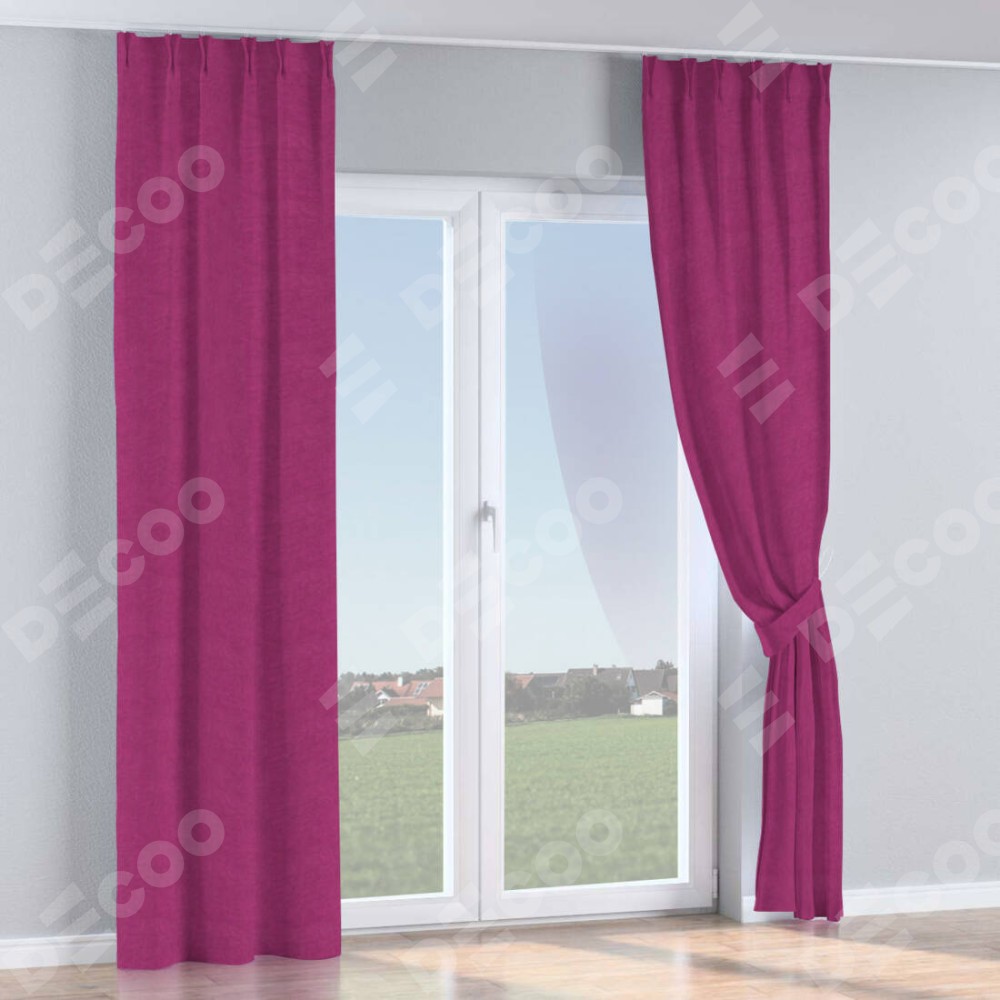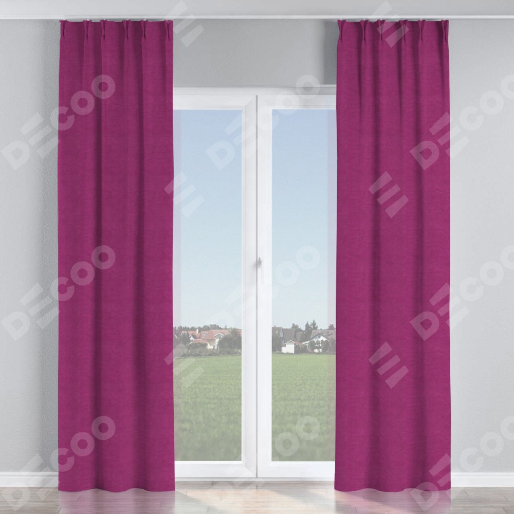 Комплект прямых штор, от производителя «Cortin», пошиты из ткани вельвет фиолетовый, артикул ткани 85552. С изнаночной стороны в верхней части штор пристрачивается шторная лента с декоративными складками «Кустик». Для создания элегантных складок прямые шторы шьются по стандарту с коэффициентом 1:2 (на 100 см. ширины проёма 200 см. ширины ткани).