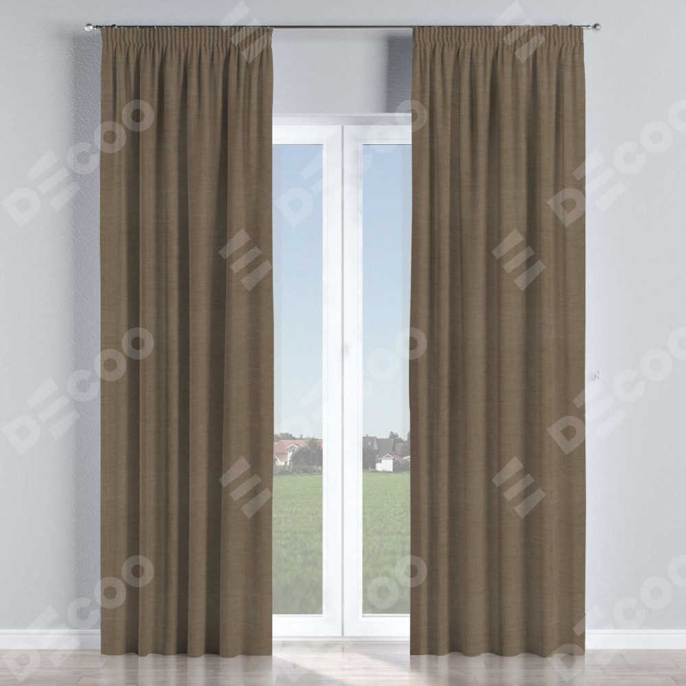 Комплект прямых штор, от производителя «Cortin», пошиты из ткани лён мокко, артикул ткани 7444. С изнаночной стороны в верхней части штор пристрачивается шторная лента с декоративными складками «Карандаш». Для создания элегантных складок прямые шторы шьются по стандарту с коэффициентом 1:2 (на 100 см. ширины проёма 200 см. ширины ткани).