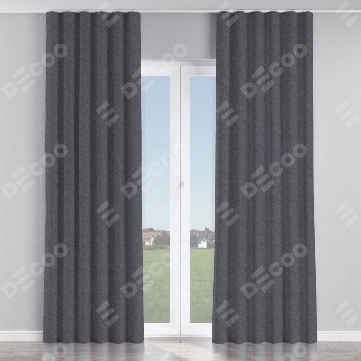 Комплект прямых штор, от производителя «Cortin», пошиты из ткани софт однотонный графит, артикул ткани 19316. С изнаночной стороны в верхней части штор пристрачивается шторная лента с декоративными складками «Волна». Для создания элегантных складок прямые шторы шьются по стандарту с коэффициентом 1:2 (на 100 см. ширины проёма 200 см. ширины ткани).