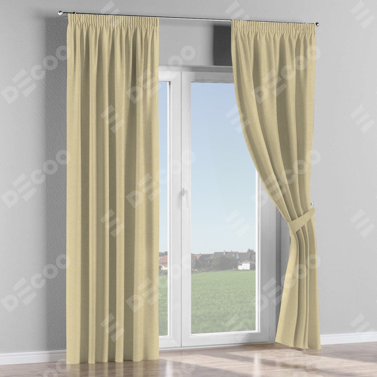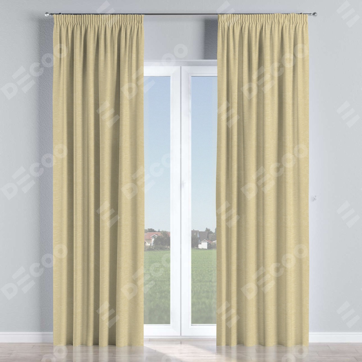 Комплект прямых штор, от производителя «Cortin», пошиты из ткани софт однотонный светло-бежевый, артикул ткани 54426. С изнаночной стороны в верхней части штор пристрачивается шторная лента с декоративными складками «Карандаш». Для создания элегантных складок прямые шторы шьются по стандарту с коэффициентом 1:2 (на 100 см. ширины проёма 200 см. ширины ткани).