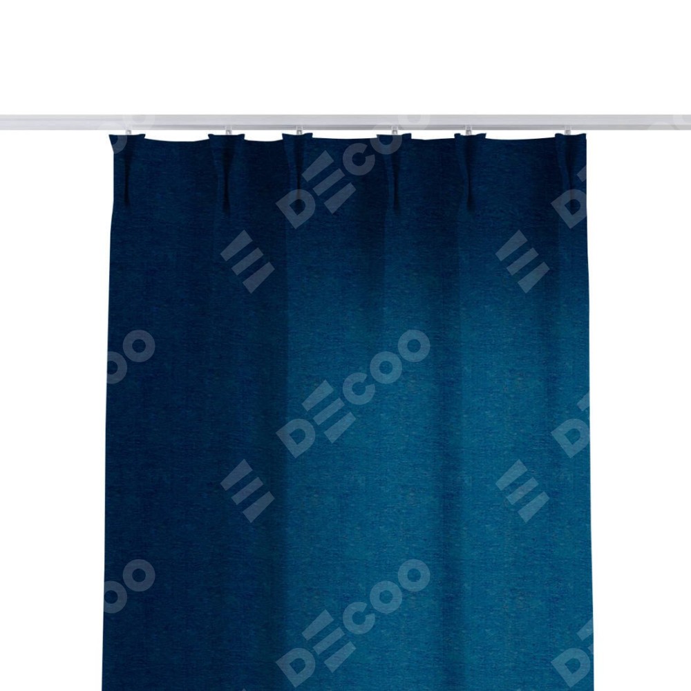Комплект прямых штор, от производителя «Cortin», пошиты из ткани софт однотонный синий, артикул ткани 42937. С изнаночной стороны в верхней части штор пристрачивается шторная лента с декоративными складками «Кустик». Для создания элегантных складок прямые шторы шьются по стандарту с коэффициентом 1:2 (на 100 см. ширины проёма 200 см. ширины ткани).