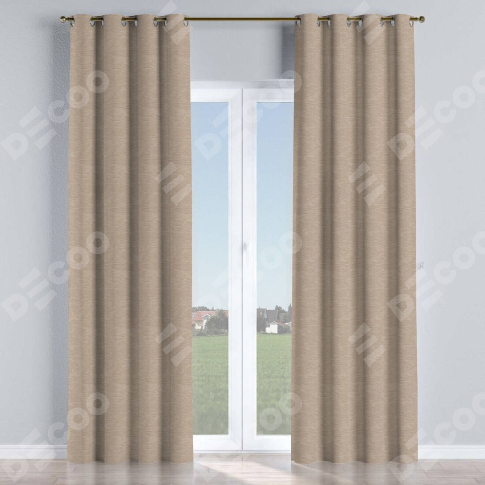 Комплект прямых штор, от производителя «Cortin», пошиты из ткани софт однотонный тёмно-бежевый, артикул ткани 1640. Данная модель пошита на люверсах, комплектуется на выбор круглым карнизом и подходит для монтажа на стену или потолок. Прямые шторы на люверсах шьются по стандарту с коэффициентом 1/2 (на 100 см. ширины проёма 200 см. ширины ткани), отличительным преимуществом данной модели является простой способ монтажа. Достаточно повесить ее на трубу и штора готова!