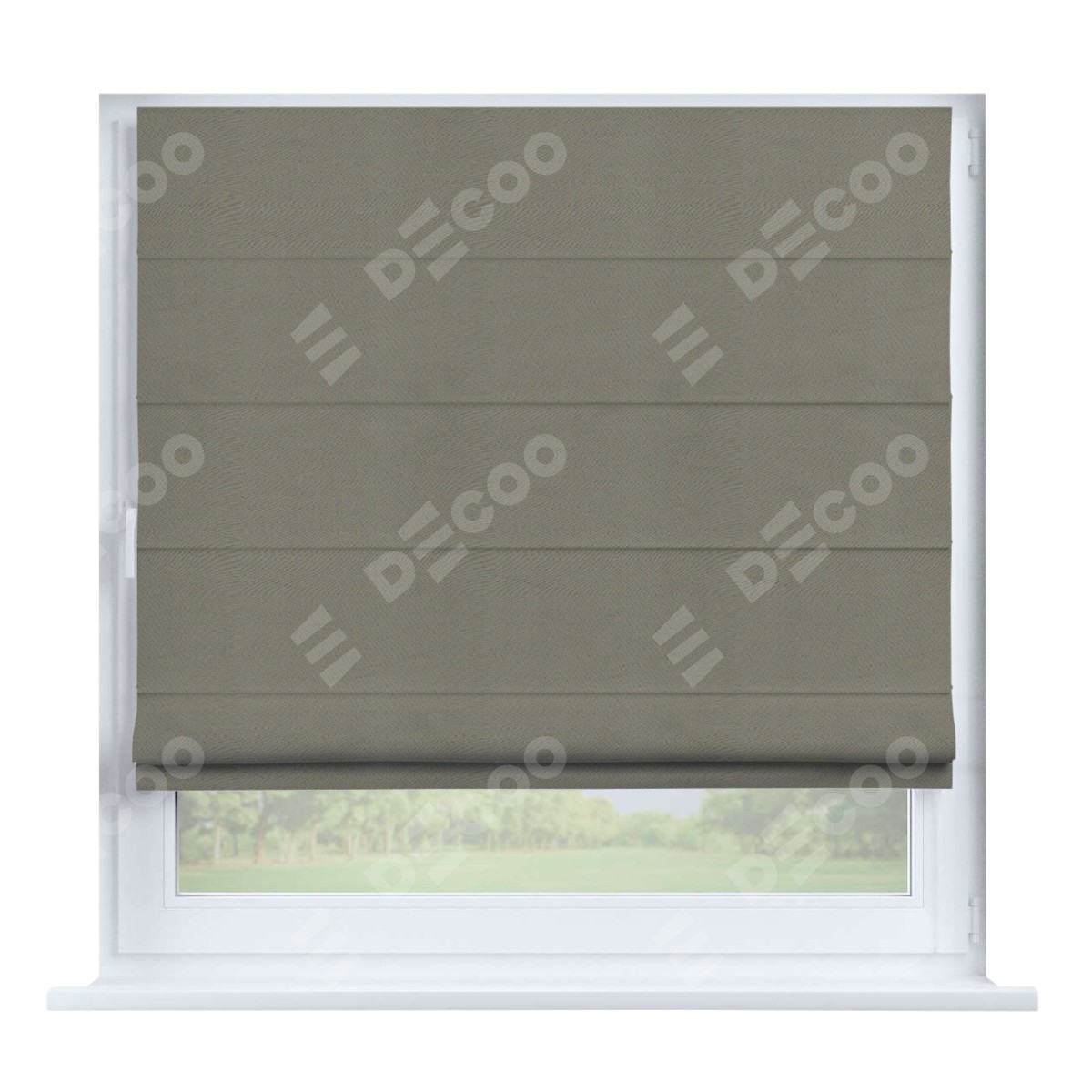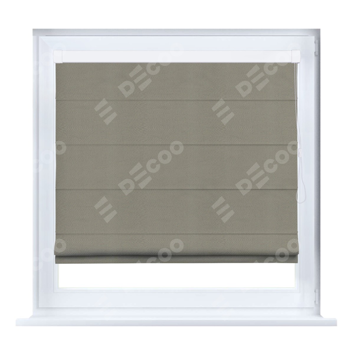 Римская штора производителя «Cortin», устанавливается на створку окна, пошита из ткани блэкаут однотонный бежево-серый, артикул 00004. Штора шьётся по индивидуальным размерам, для данного типа римской шторы возможная ширина от 35 до 150 см., высота до 250 см.