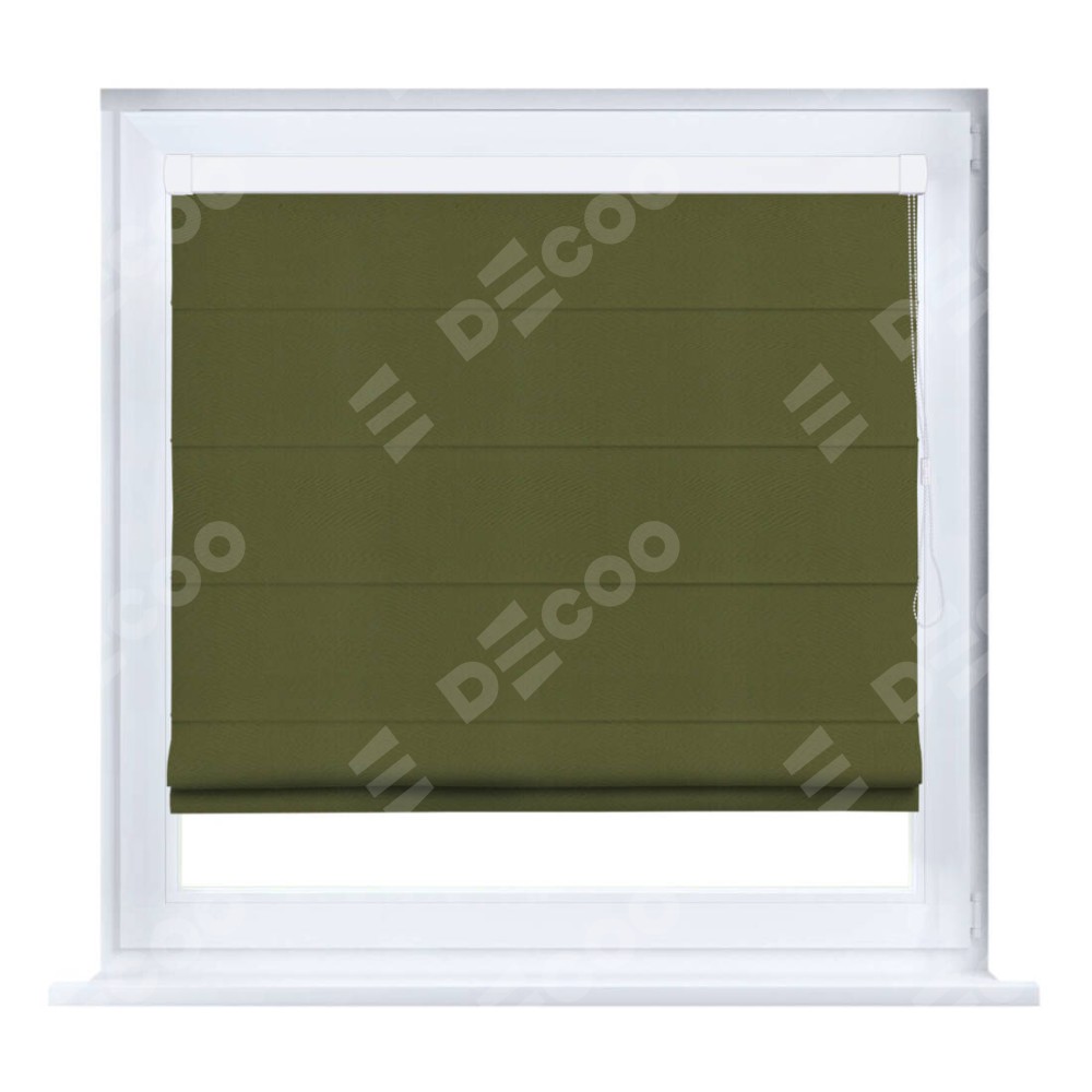 Римская штора производителя «Cortin», устанавливается на створку окна, пошита из ткани блэкаут однотонный зелёный, артикул 81859. Штора шьётся по индивидуальным размерам, для данного типа римской шторы возможная ширина от 35 до 150 см., высота до 250 см.