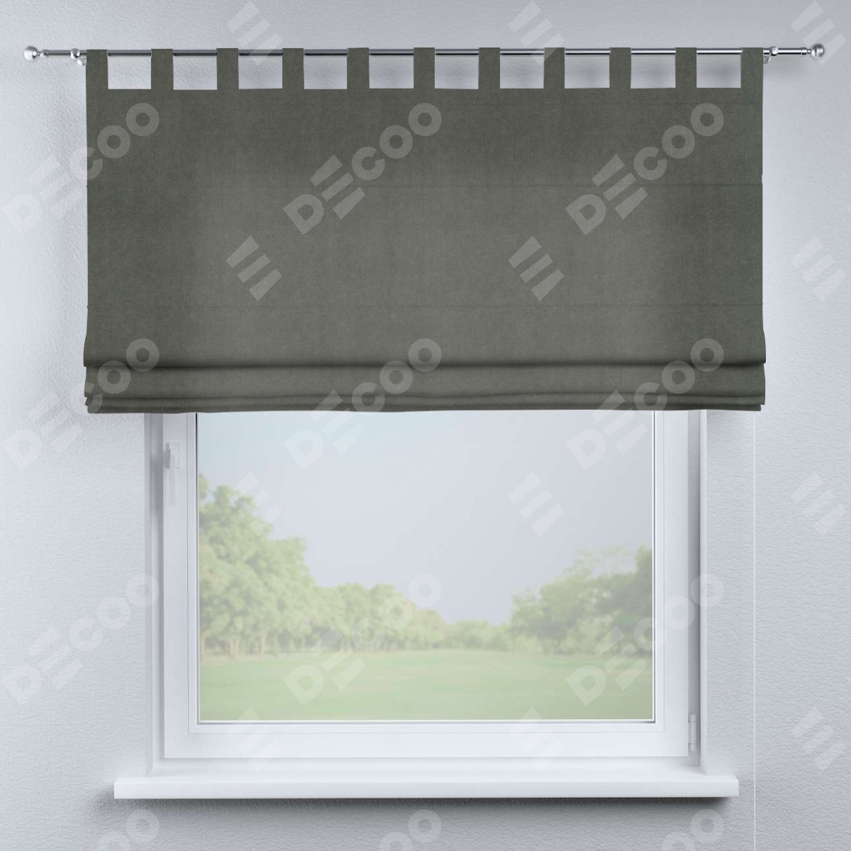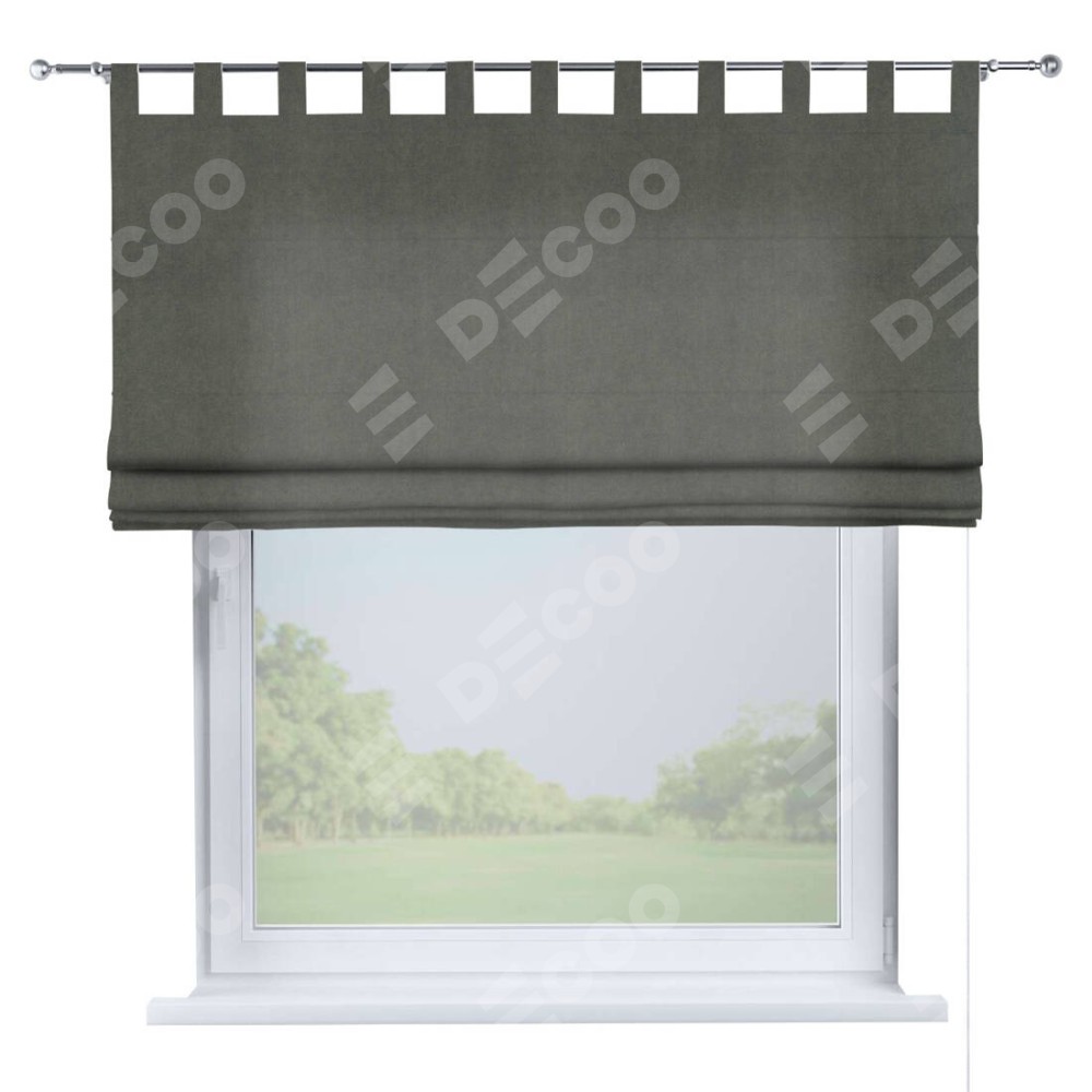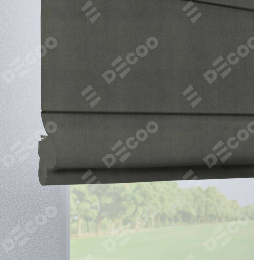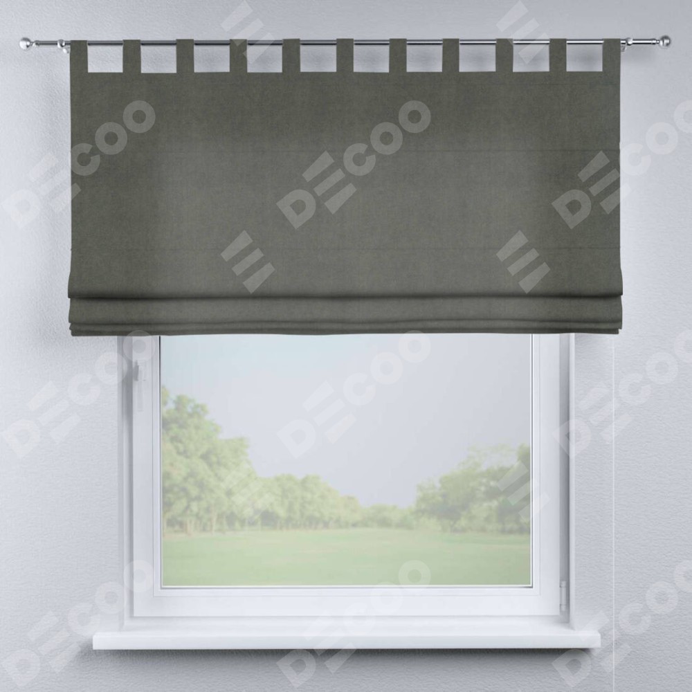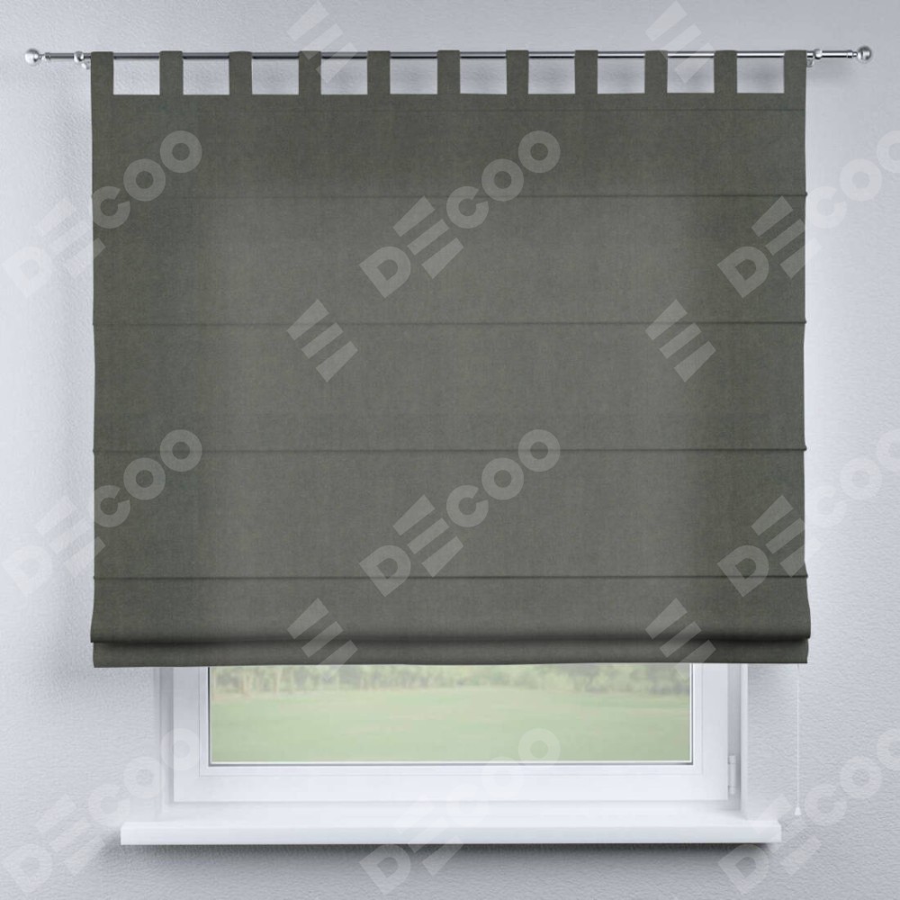 Римская штора производителя «Cortin», используется для проёма, пошита из ткани вельвет тёмно-серый, артикул ткани 85542. Данная модель пошита на петлях, комплектуется на выбор круглым карнизом и подходит для монтажа на стену. Римская штора на петлях имеет простую систему регулировки высоты, отличительным преимуществом данной модели является простой способ монтажа. Достаточно повесить ее на трубу и штора готова!