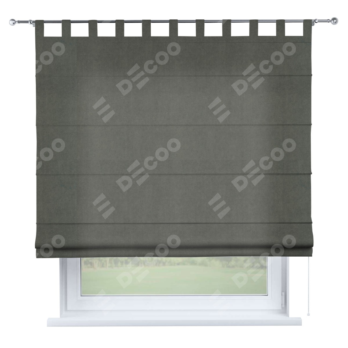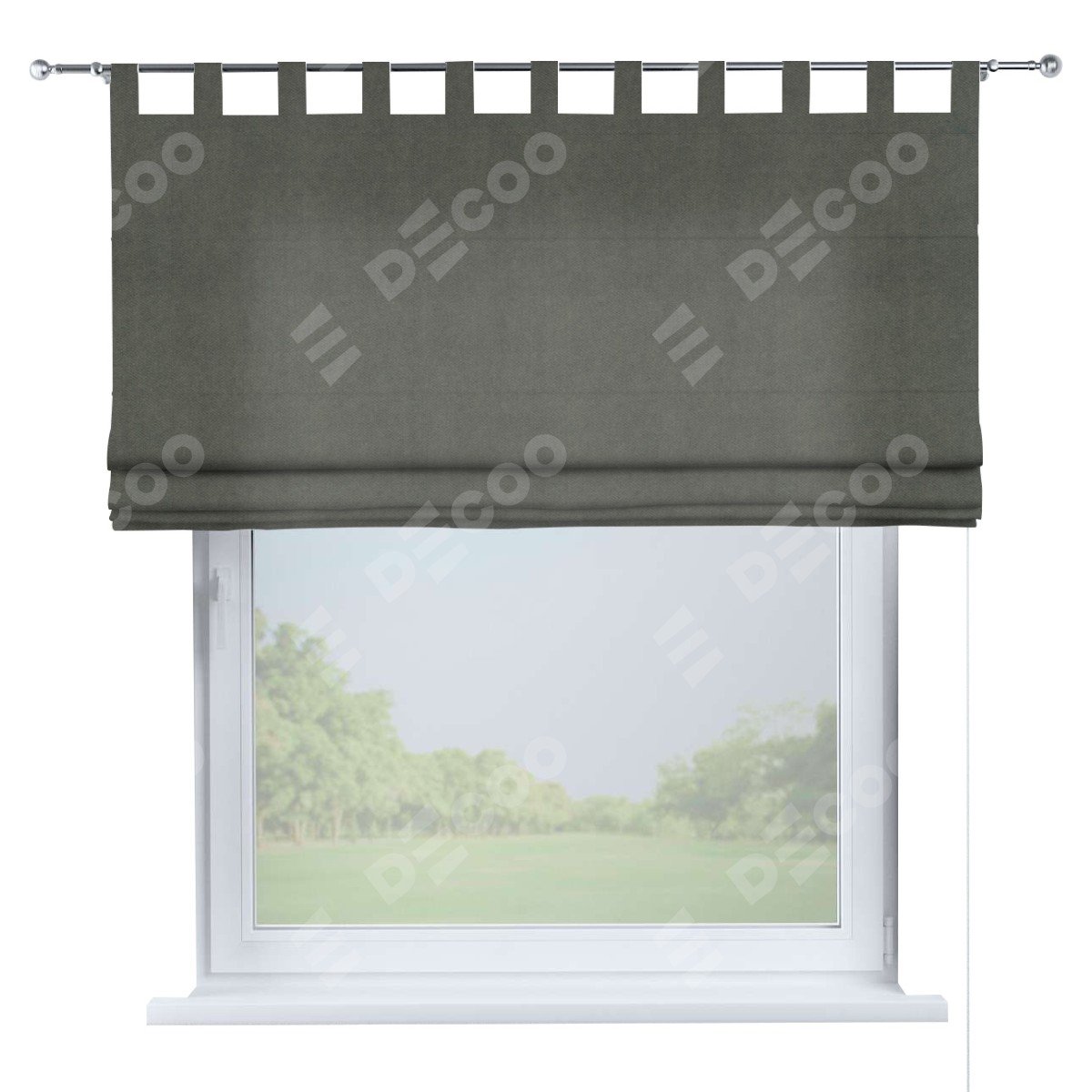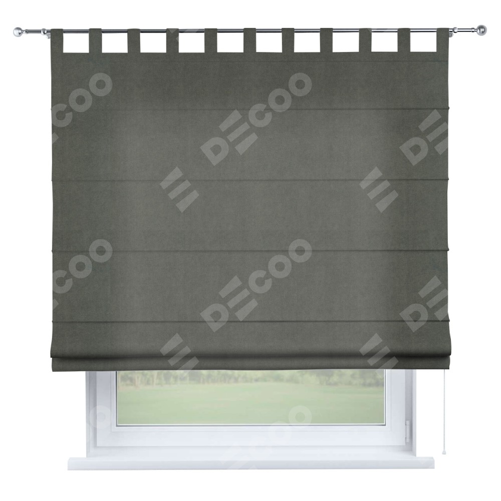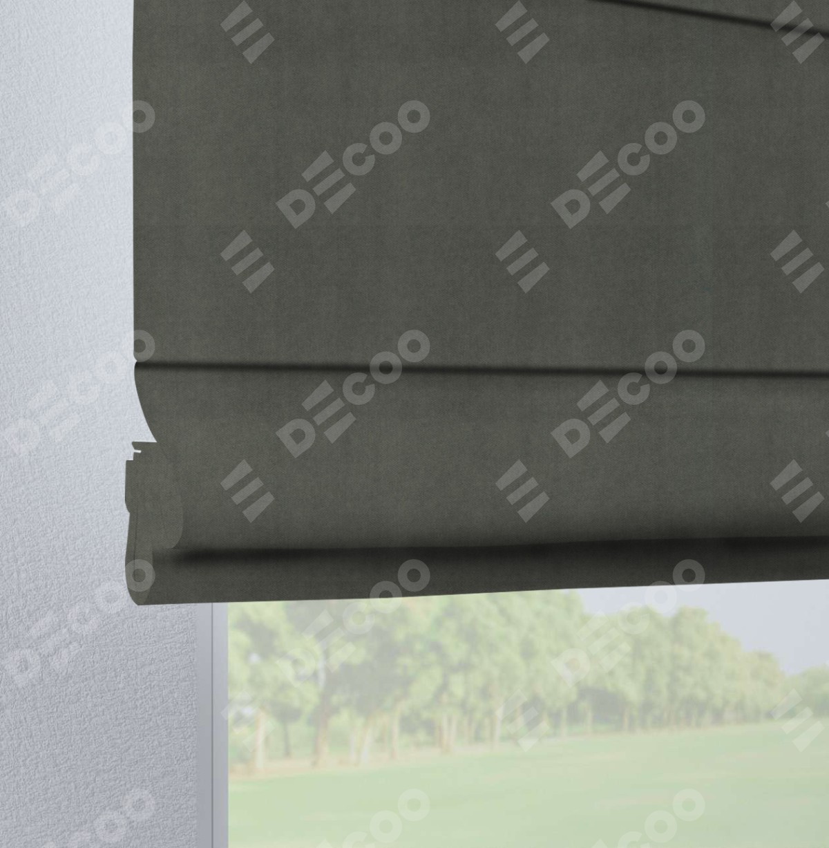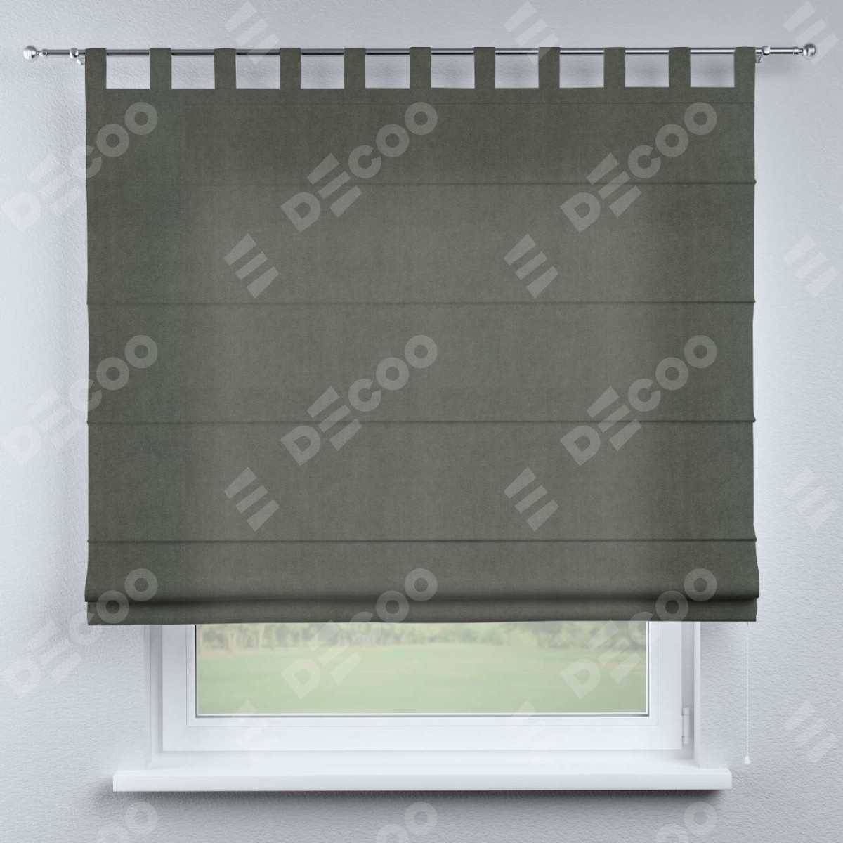 Римская штора производителя «Cortin», используется для проёма, пошита из ткани вельвет тёмно-серый, артикул ткани 85542. Данная модель пошита на петлях, комплектуется на выбор круглым карнизом и подходит для монтажа на стену. Римская штора на петлях имеет простую систему регулировки высоты, отличительным преимуществом данной модели является простой способ монтажа. Достаточно повесить ее на трубу и штора готова!