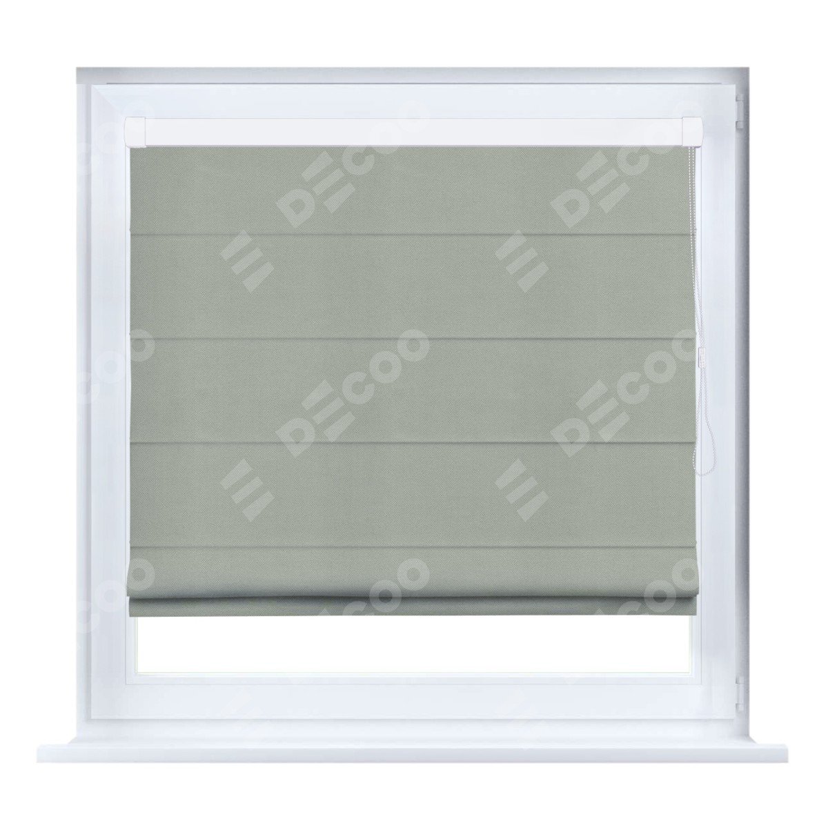 Римская штора кассетного типа, производителя «Cortin», устанавливается только на пластиковые окна и прилегает к стеклопакету, пошита из ткани вельвет светло-серый, артикул 30981.