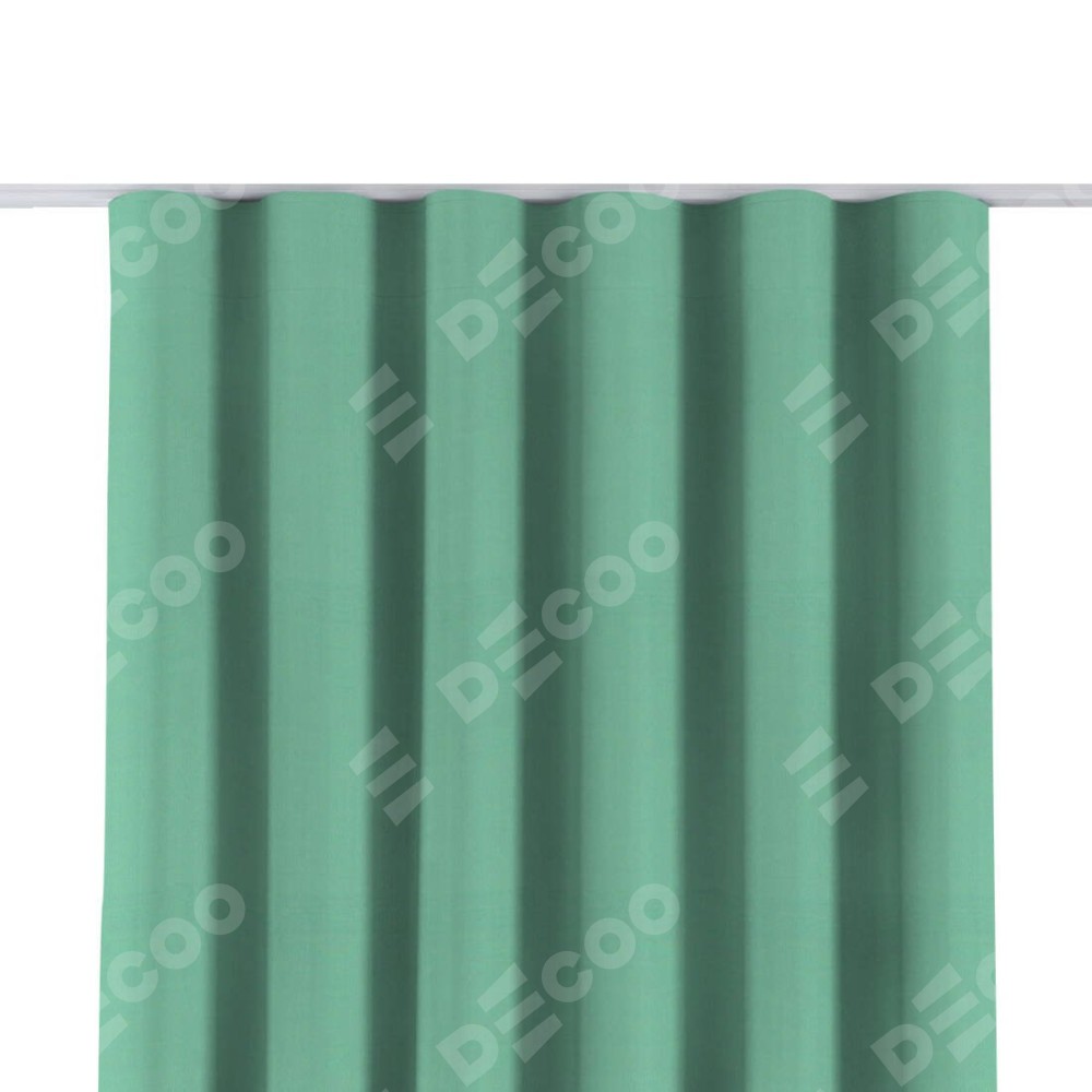 Комплект прямых штор, от производителя «Cortin», пошиты из ткани pipa блэкаут бирюза, артикул ткани 81852. С изнаночной стороны в верхней части штор пристрачивается шторная лента с декоративными складками «Волна». Для создания элегантных складок прямые шторы шьются по стандарту с коэффициентом 1:2 (на 100 см. ширины проёма 200 см. ширины ткани).