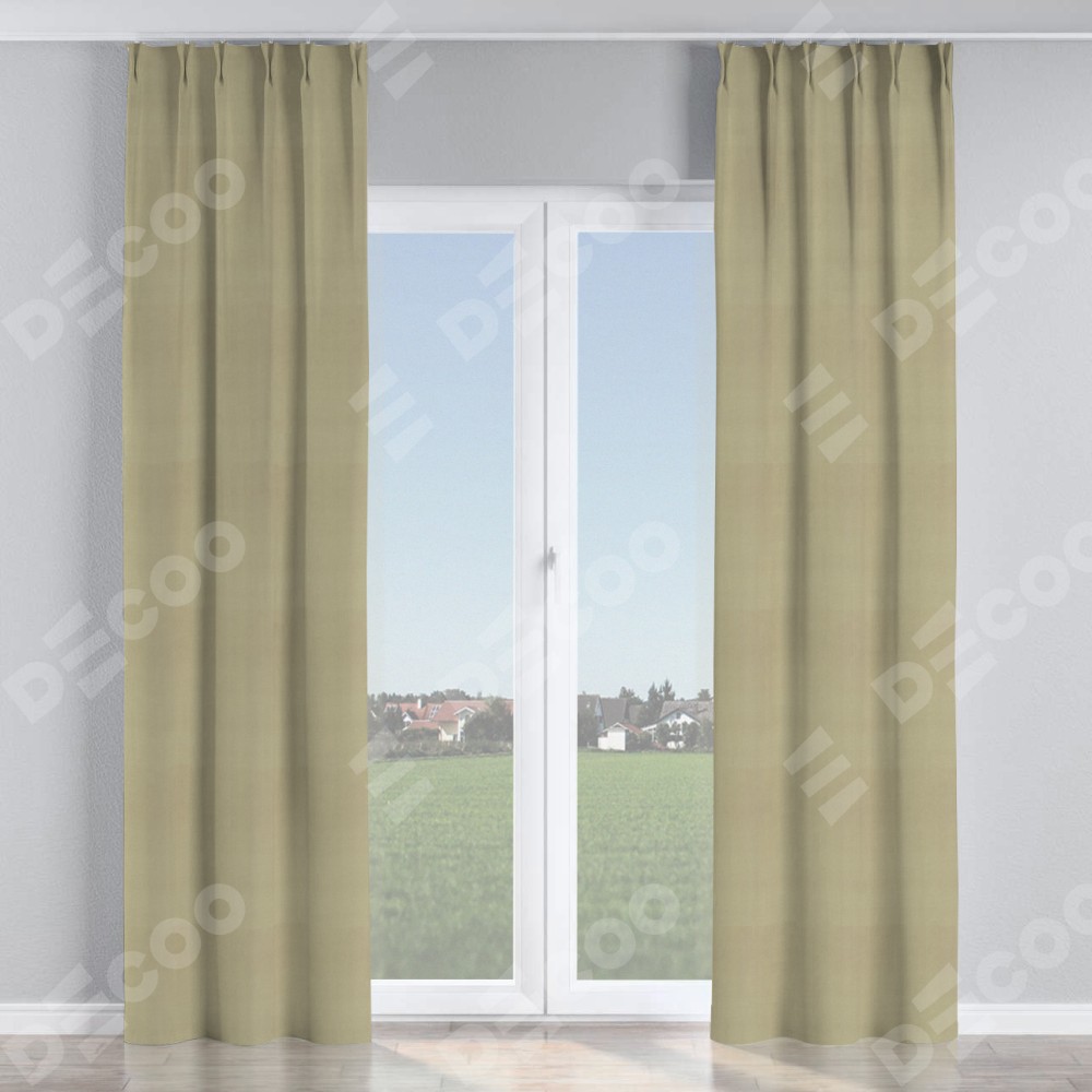 Комплект прямых штор, от производителя «Cortin», пошиты из ткани pipa блэкаут светло-бежевый, артикул ткани 02. С изнаночной стороны в верхней части штор пристрачивается шторная лента с декоративными складками «Кустик». Для создания элегантных складок прямые шторы шьются по стандарту с коэффициентом 1:2 (на 100 см. ширины проёма 200 см. ширины ткани).