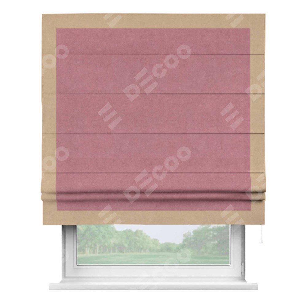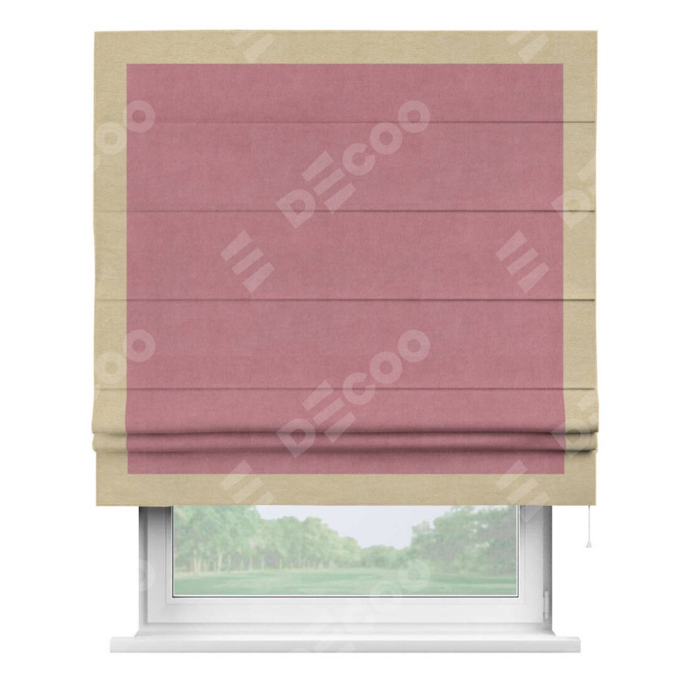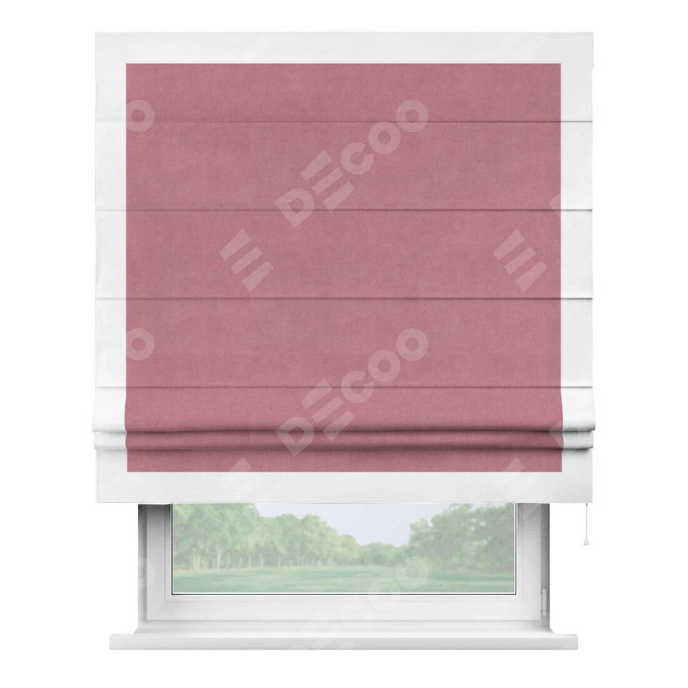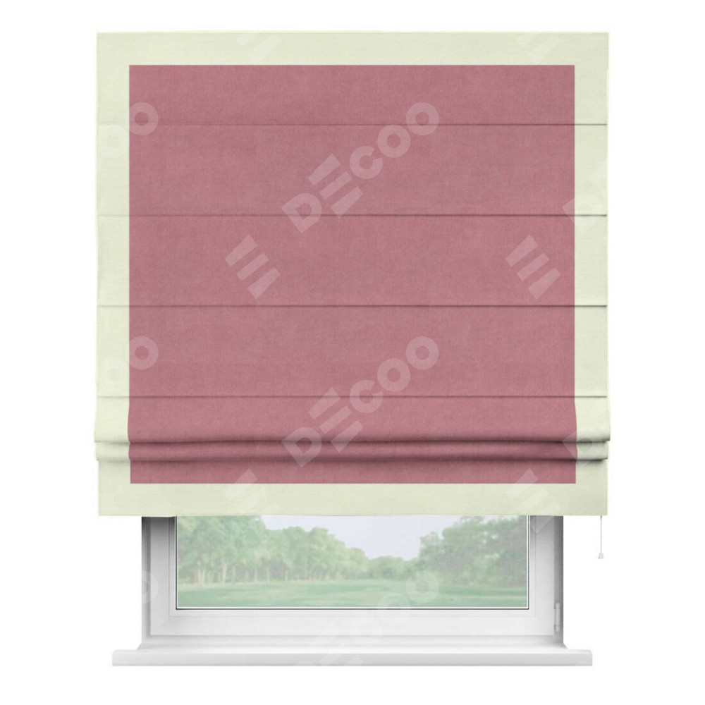 Римская штора «Кортин» с кантом Чесс, для проема, ткань вельвет брусника