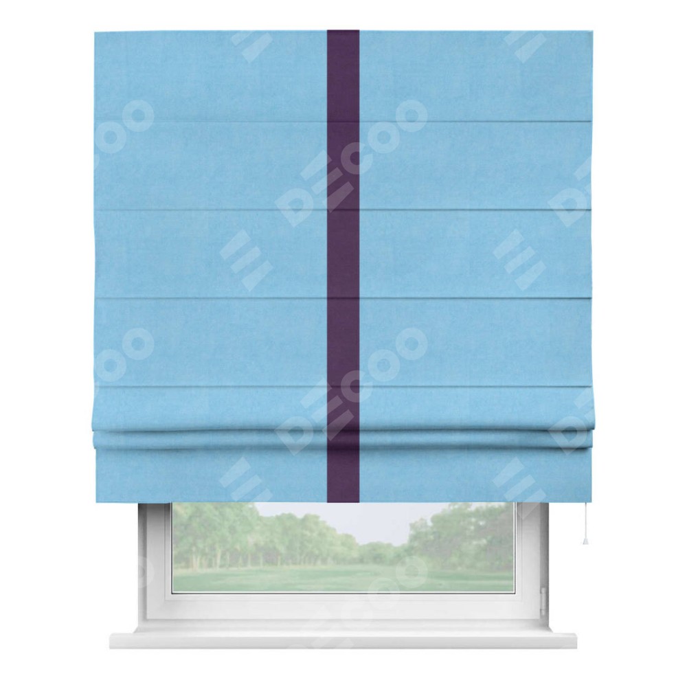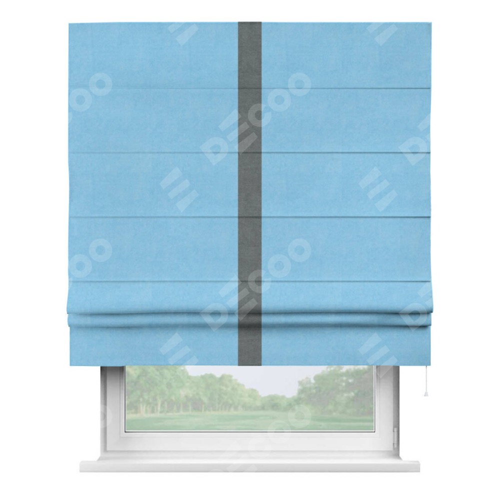 Римская штора «Кортин» с кантом Хайвэй, для проема, ткань вельвет голубой