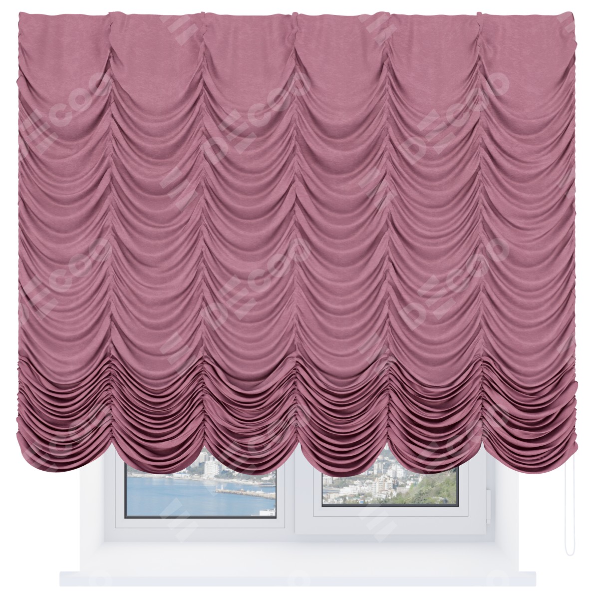 Французская штора производителя «Cortin», используется для проёма, пошита из ткани софт однотонный розовый, артикул ткани 42926. Имеет универсальный механизм и подходит для монтажа: на потолок и на стену.