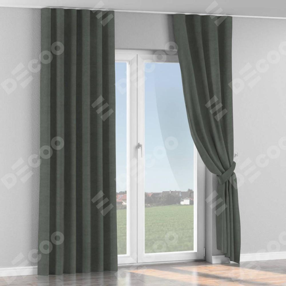 Комплект прямых штор, от производителя «Cortin», пошиты из ткани cotton блэкаут серый, артикул ткани 35279. С изнаночной стороны в верхней части штор пристрачивается шторная лента с декоративными складками «Волна». Для создания элегантных складок прямые шторы шьются по стандарту с коэффициентом 1:2 (на 100 см. ширины проёма 200 см. ширины ткани).