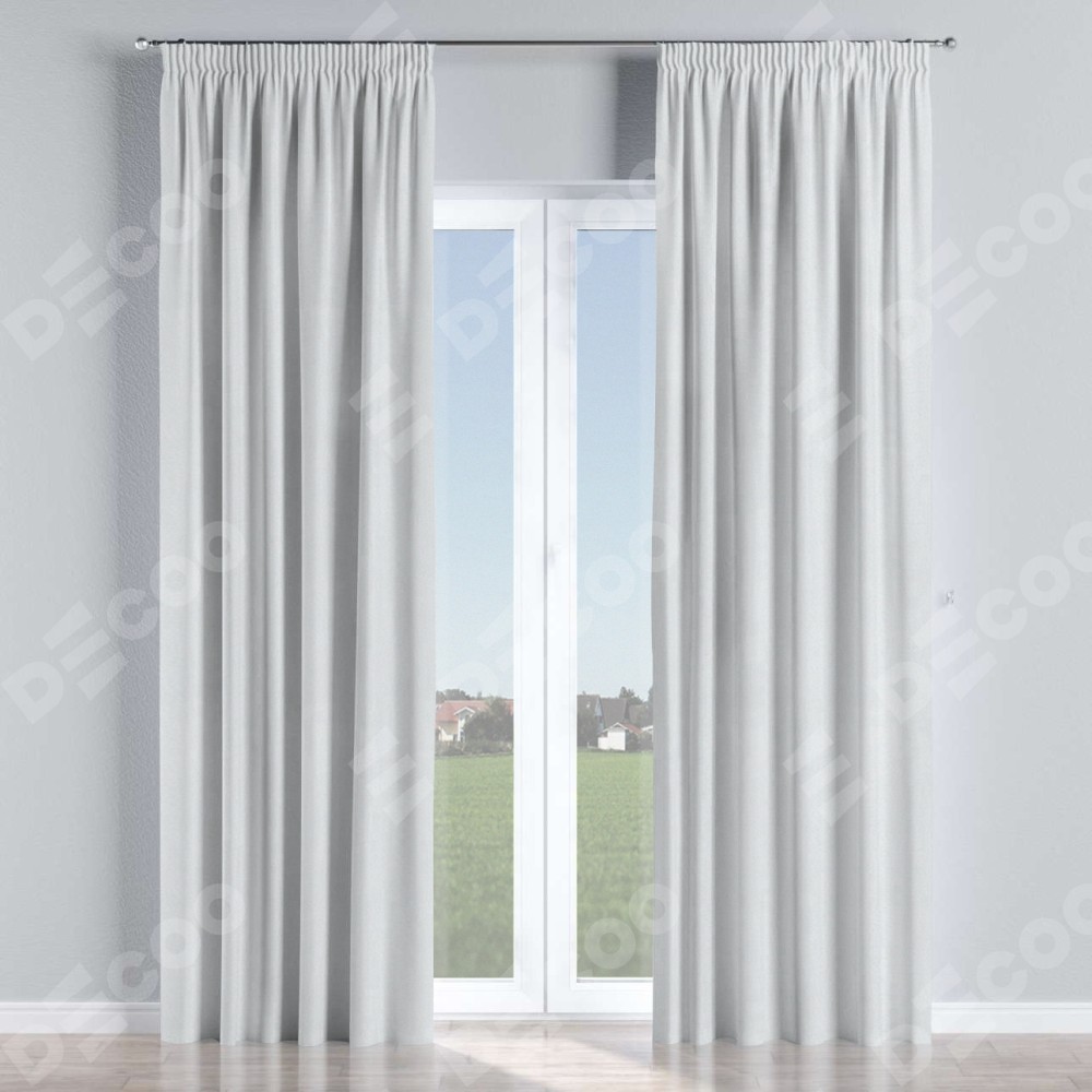Комплект прямых штор, от производителя «Cortin», пошиты из ткани блэкаут однотонный дымчато-белый, артикул ткани 101. С изнаночной стороны в верхней части штор пристрачивается шторная лента с декоративными складками «Карандаш». Для создания элегантных складок прямые шторы шьются по стандарту с коэффициентом 1:2 (на 100 см. ширины проёма 200 см. ширины ткани).